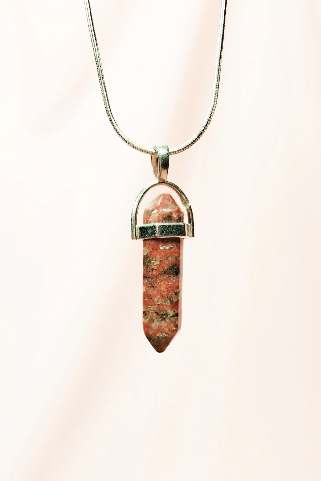 Pembe Akit Doğal Taşı Zincirli El Yapımı Tasarımlı Kolye Uç: 3,5 cm Zincir: 20 cm Kutulu