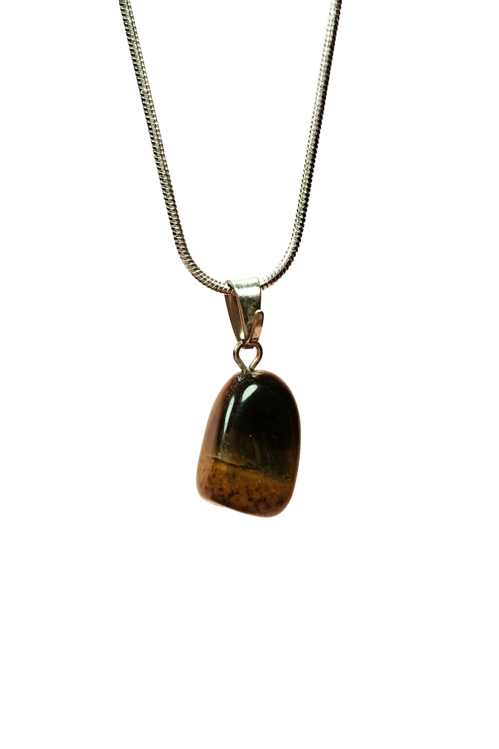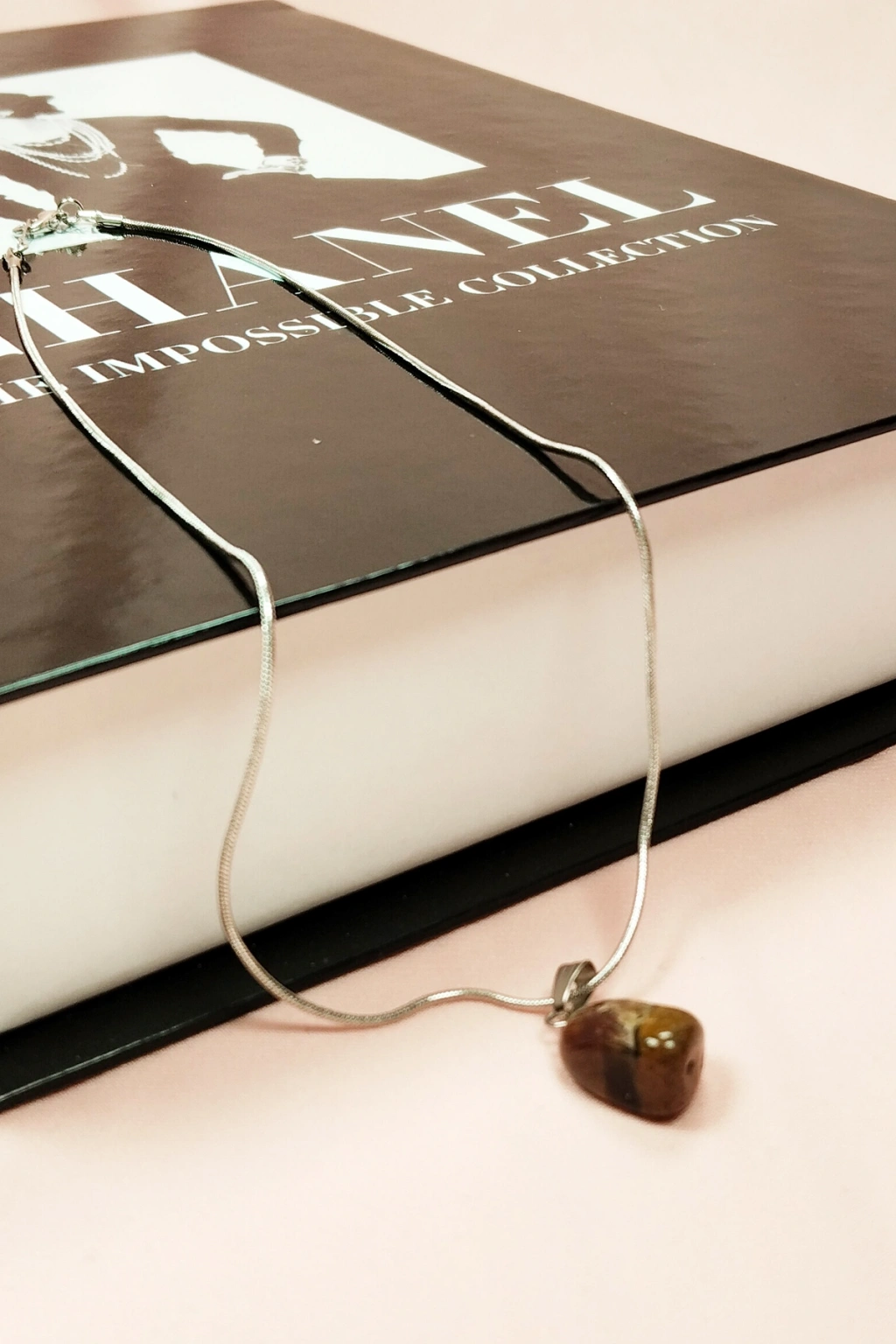 Kaplan Gözü Doğal Taşı Zincirli El Yapımı Kolye Uç: 2 cm Zincir: 20 cm Kutulu