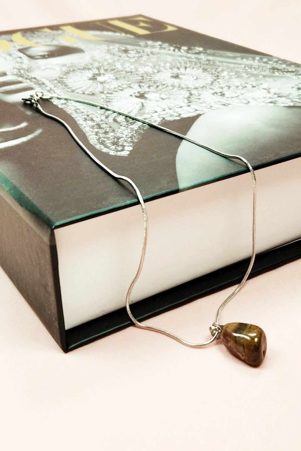 Labradorit Doğal Taşı Zincirli El Yapımı Kolye Uç: 2 cm Zincir: 20 cm Kutulu