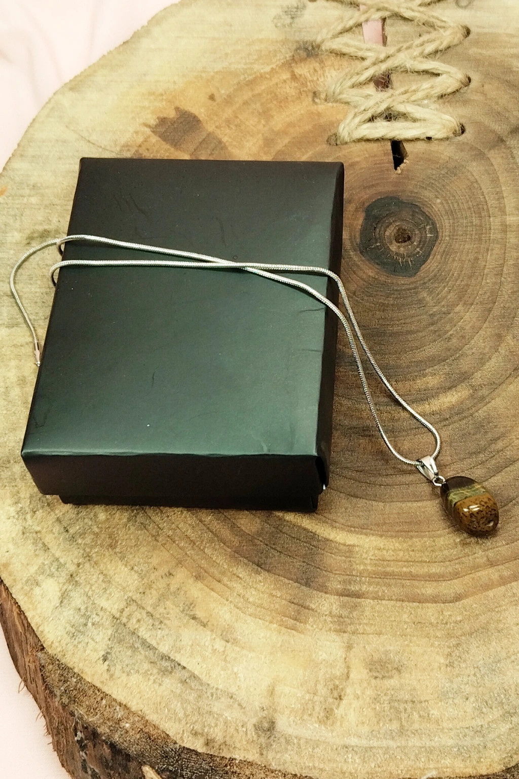 Unakit Doğal Taşı Zincirli El Yapımı Tasarımlı Kolye Uç: 3,5 cm Zincir: 20 cm Kutulu