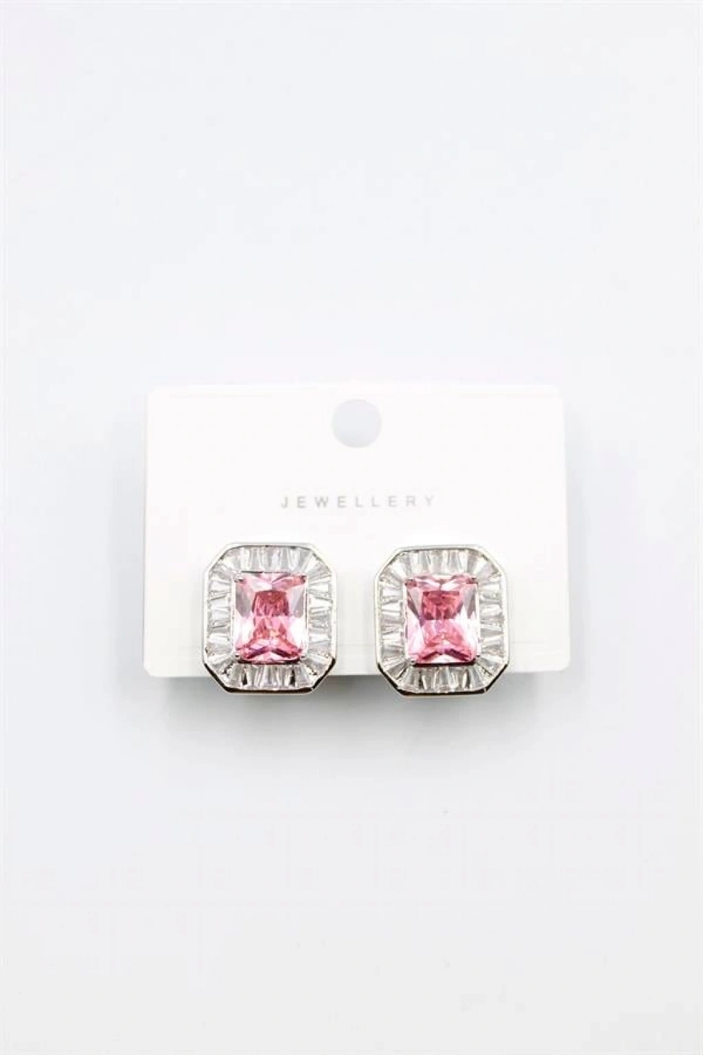 Kare Taşlı Küpe - Pembe