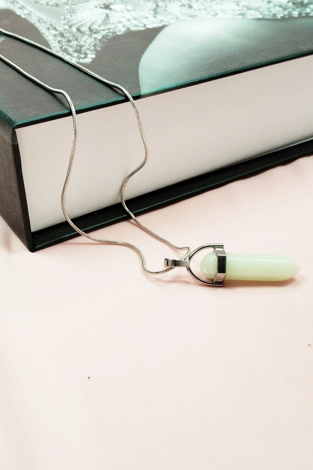 Yeşil Kuvars Doğal Taşı Zincirli El Yapımı Tasarımlı Kolye Uç: 3,5 cm Zincir: 20 cm Kutulu
