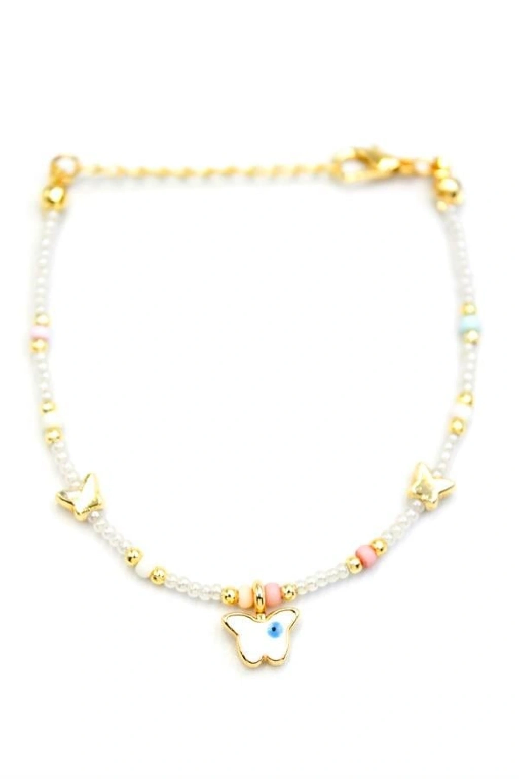 Kelebek Boncuk Bileklik - İnci Beyaz
