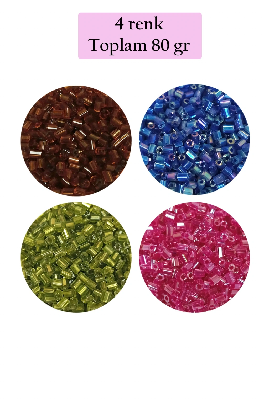 | Kesme Cam Boncuk 2mm - 4 Renk - Toplam 80 Gram - BNC445 Renkler : Şeffaf Açık Kahve - Koyu Mavi - Şeffaf Çimen Yeşili - Şeffaf Koyu Pembe Kesme boncuklar camdır. 1 paket yaklaşık 4 Renk Toplam 80 gram boncuk içerir. Kesme boncuklar genelde yazma ve gelinlik gibi elbise süslemelerinde kullanılabilir. |