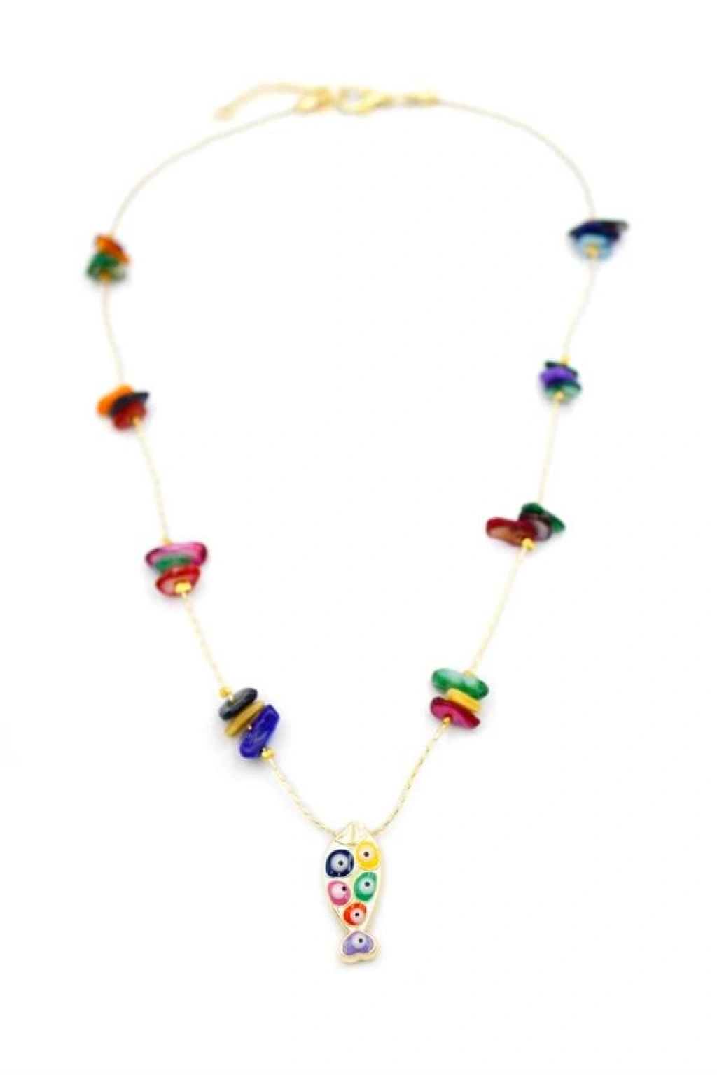 Kırıktaşlı Balık Kolye - ÇOK RENKLİ