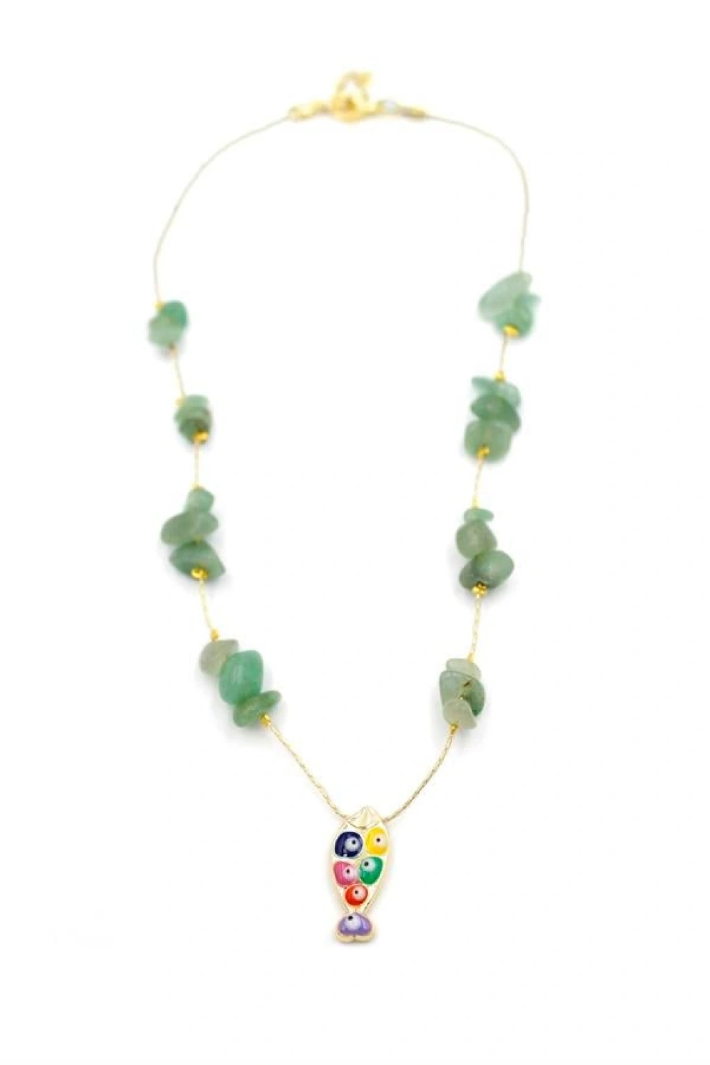 Kırıktaşlı Balık Kolye - Su Yeşili