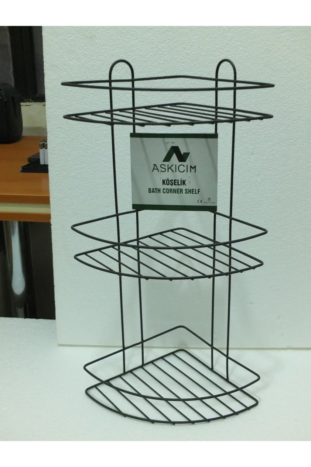 Köşelik Banyo 3 Raflı Siyah Metal Royaleks-56574