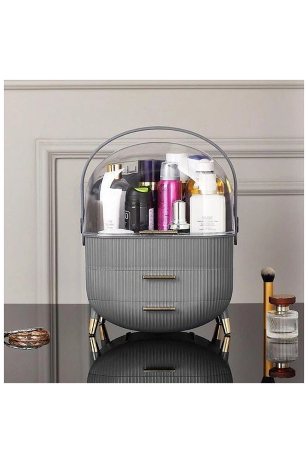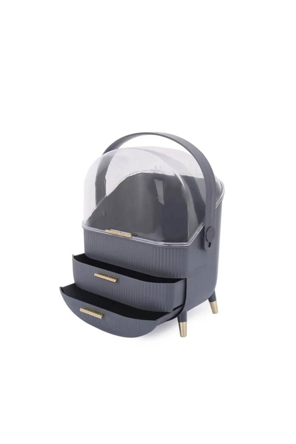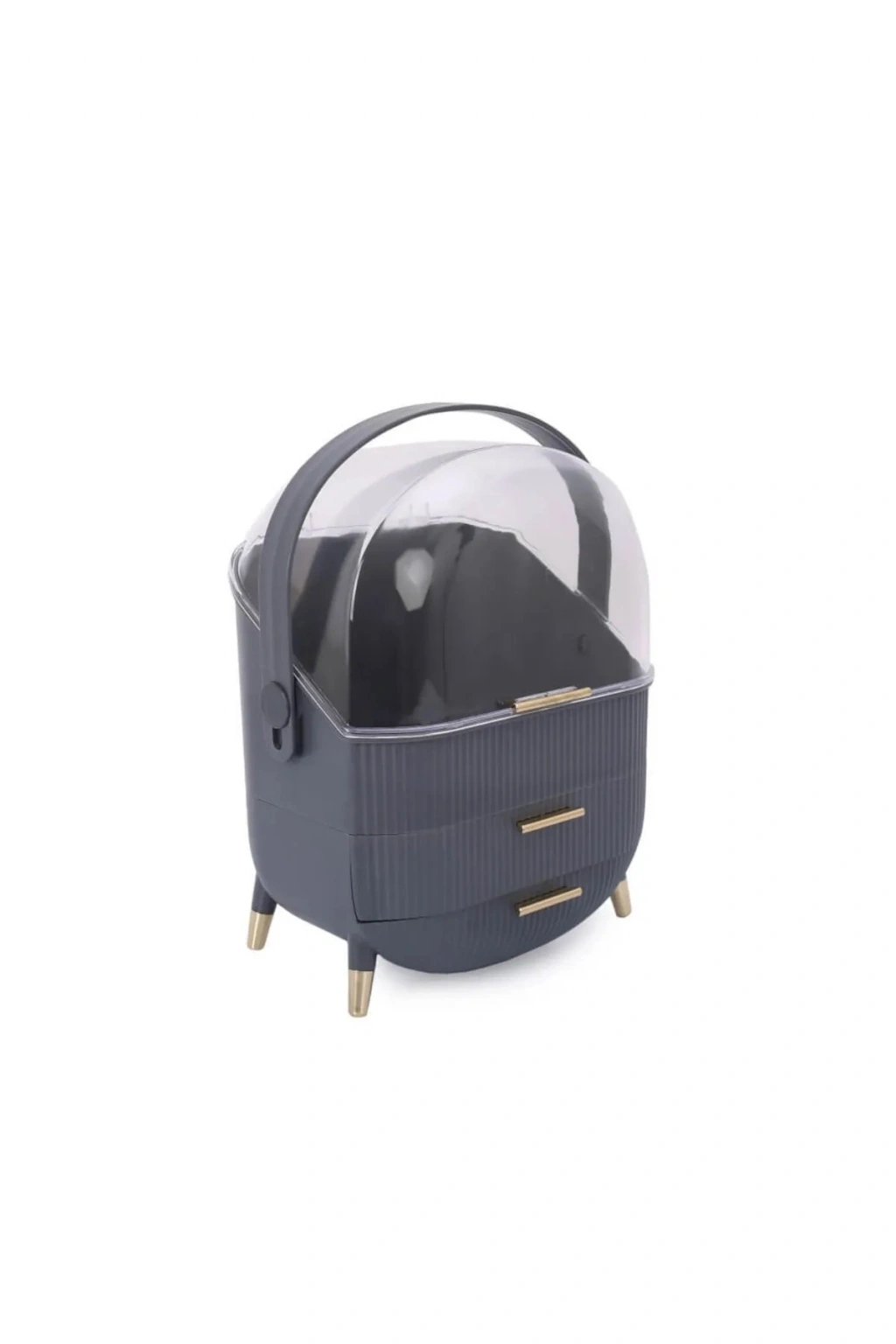 | Çekmeceli Çok Amaçlı Makyaj Kozmetik Düzenleyici Büyük Tasarım Organizer, Ürün Ölçüleri: 14 x 26 cm, yükseklik 34 cm, Düzen, hayatımızın her noktasında çok önemlidir. Evimizde, düzen sağlamak için de organizerlere ihtiyaç duyarız. Bu organizerlerin, ev dekorasyonumuzla ve mobilyalarımızla uyumlu olması, şıklık açısından da çok önemlidir. Çekmeceli Makyaj Kozmetik Düzenleyici Organizer, düzen sağlamasının yanı sıra göz alıcı şık ve dekoratif tasarımıyla odanıza, banyonuza kısacası kullanıldığı her alana ayrı bir hava ve güzellik katar. Taşınabilir askı aparatı sayesinde, kullanmak istediğiniz yere kolayca taşınabilir. Üst kısmında bulunan şeffaf kapağı sayesinde ürünlerini korurken hangi ürünlerinizi koyduğunuzu görebilme imkânına sahip olursunuz. Çekmeceli tasarım ile birçok farklı ürün grubunu düzenli bir şekilde muhafaza edebilirsiniz. İster masanızın üzerinde, ister dolabınızın üzerinde, isterseniz de zeminde kullanıma uygundur |