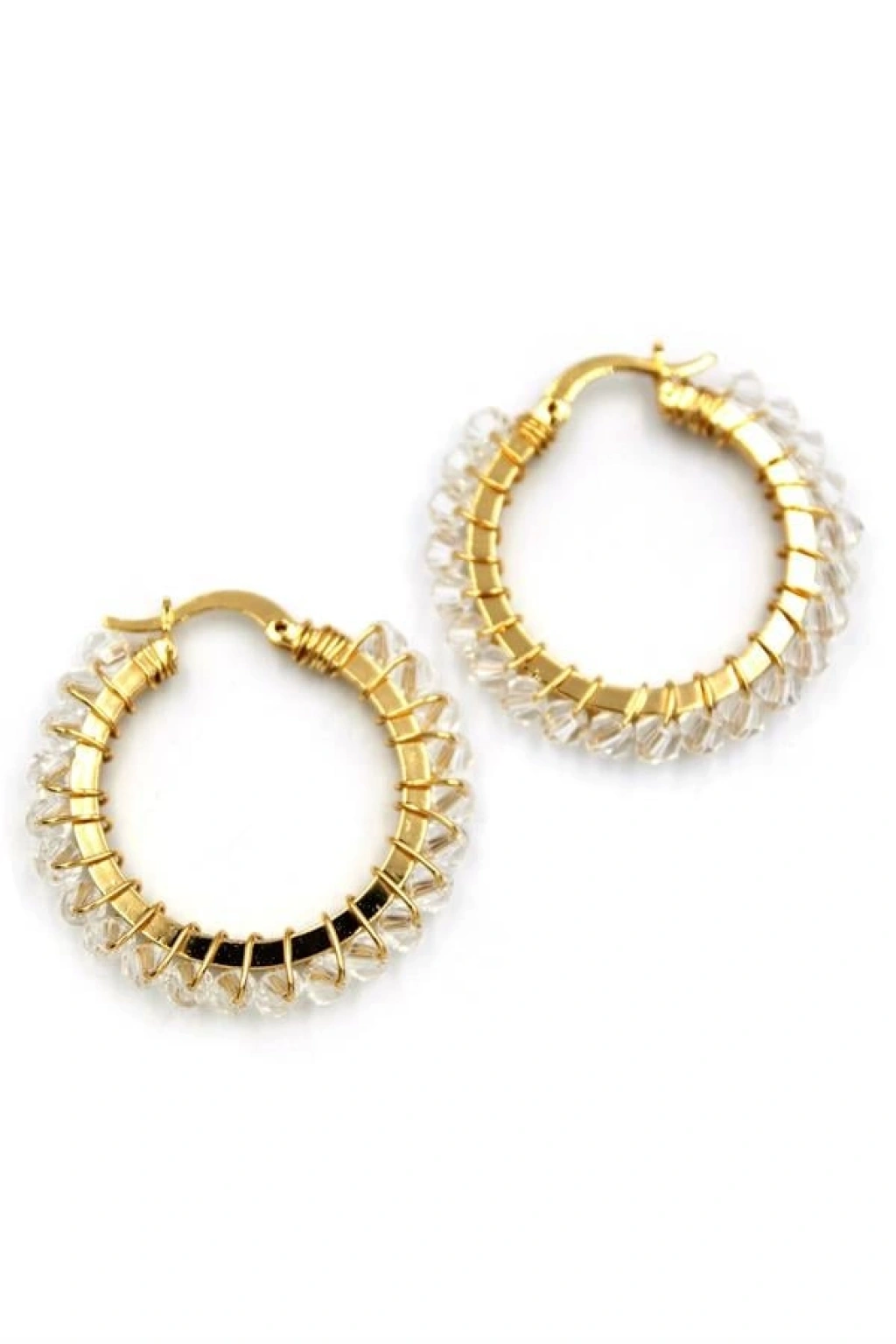 Kristal Boncuk Halka Küpe - Beyaz