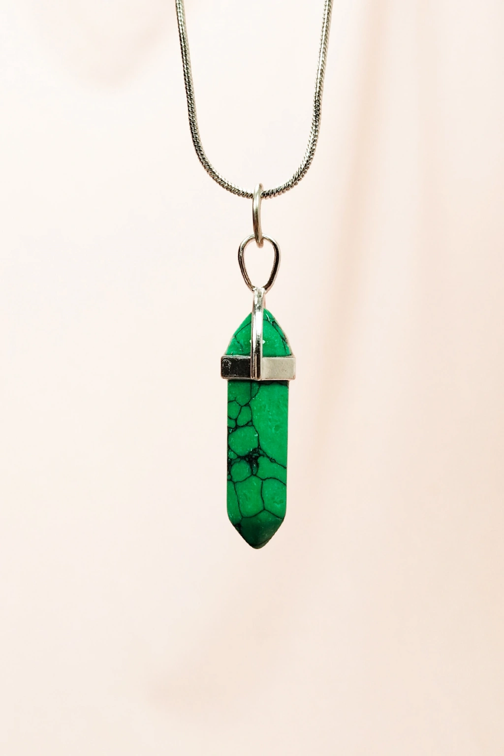 Yeşil Kuvars Doğal Taşı Zincirli El Yapımı Tasarımlı Kolye Uç: 3,5 cm Zincir: 20 cm Kutulu