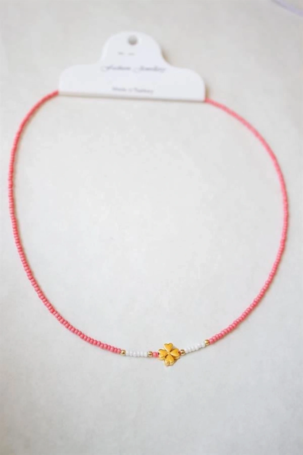 Kum Boncuklu Yonca Kolye - Nar Çiçeği