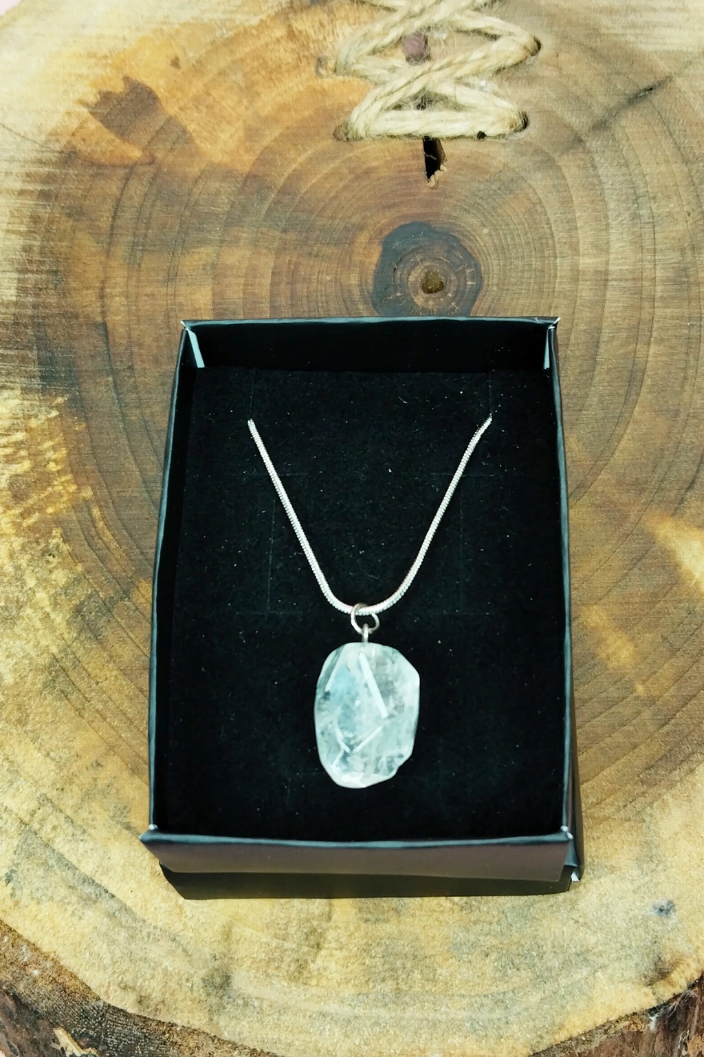 Kuvars Doğal Taşı Zincirli El Yapımı Kolye Uç: 2 cm Zincir: 20 cm Kutulu