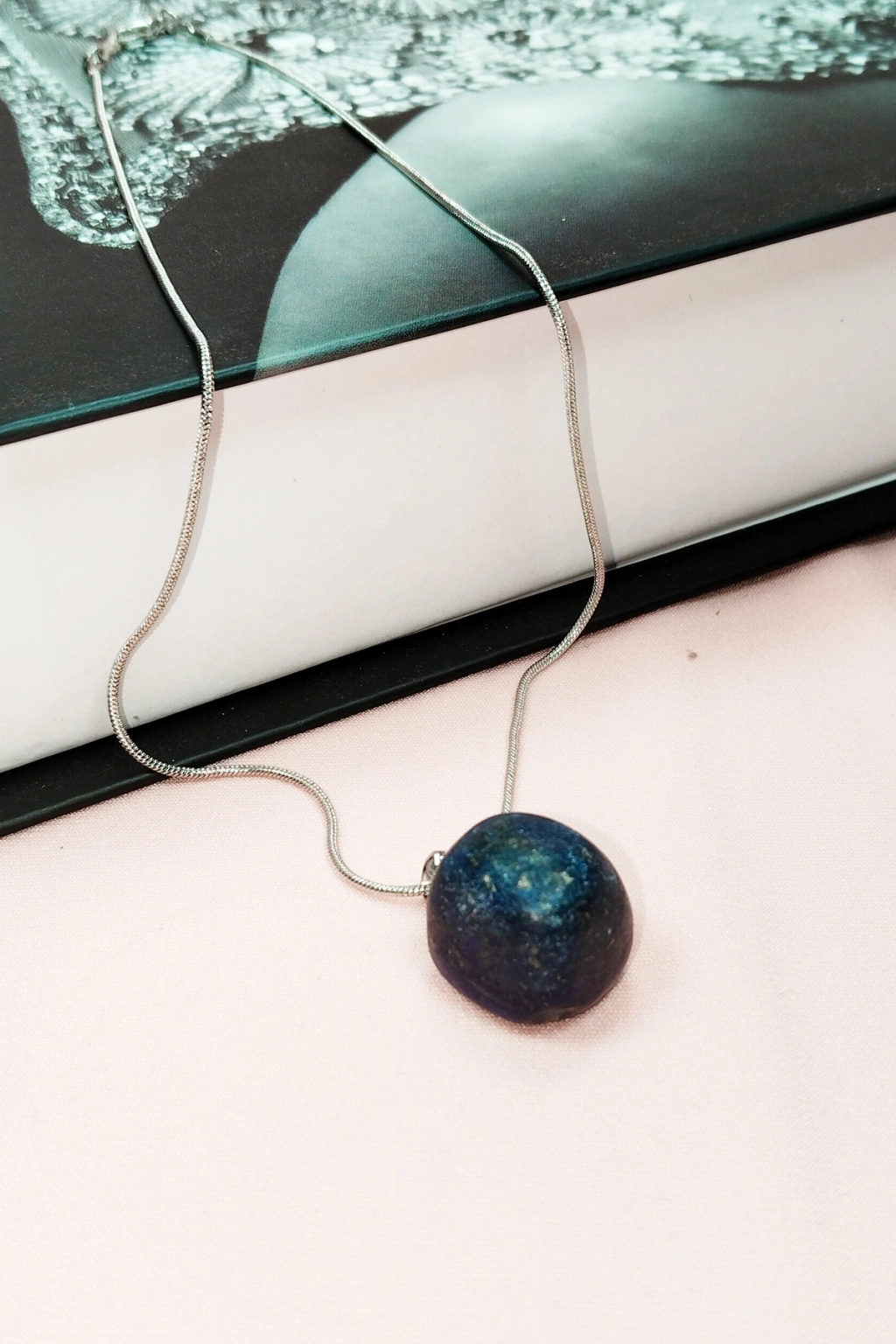 Lapis Lazuri Doğal Taşı Zincirli El Yapımı Kolye Uç: 2 cm Zincir: 20 cm Kutulu