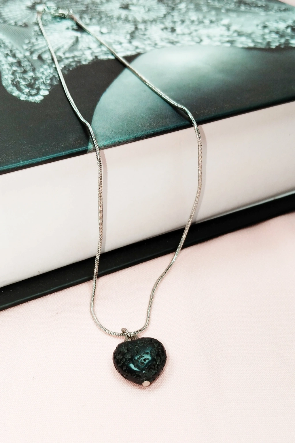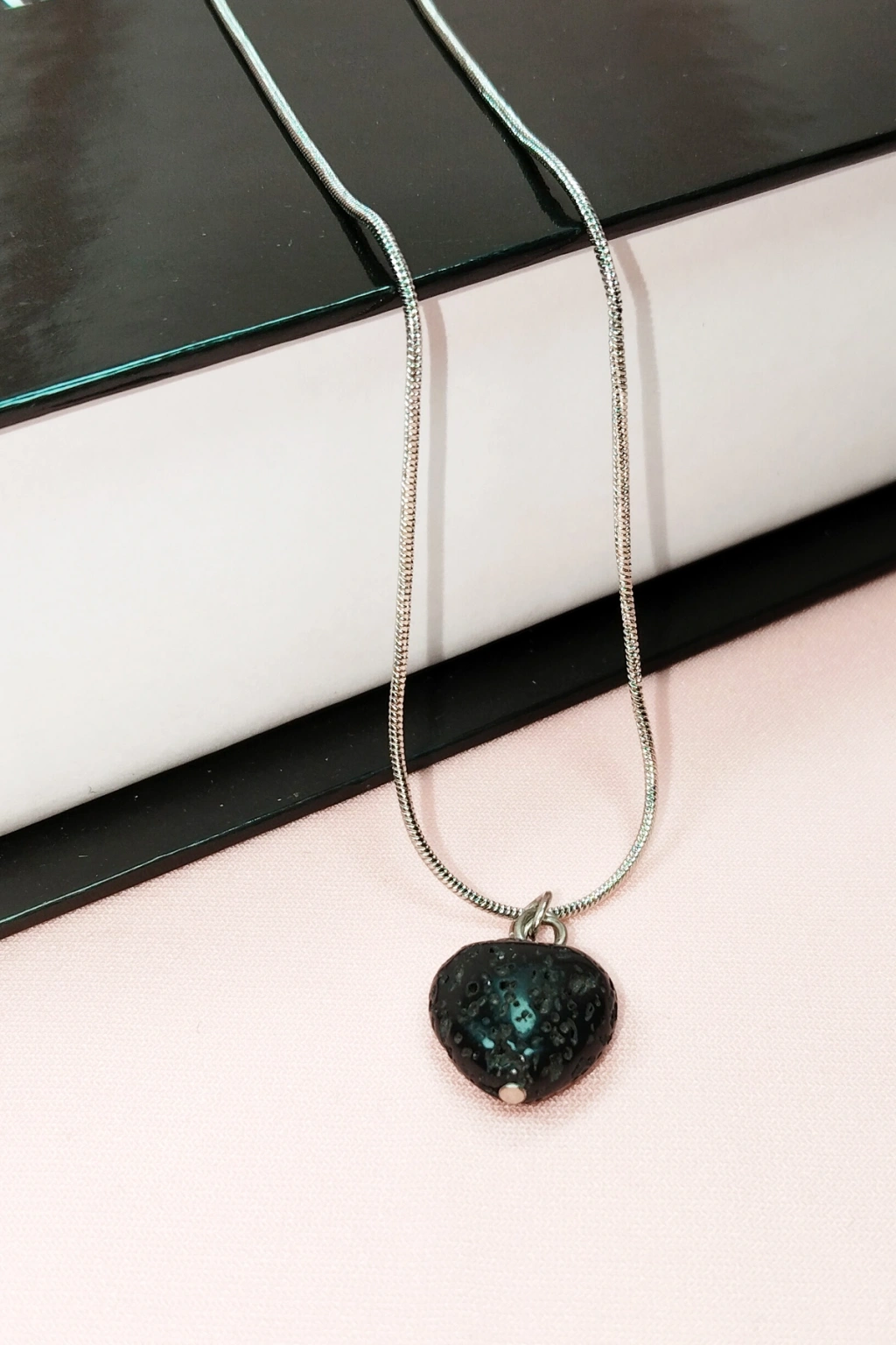 Lav Taşı Doğal Taşı Zincirli El Yapımı Kolye Uç: 1,5 cm Zincir: 20 cm Kutulu