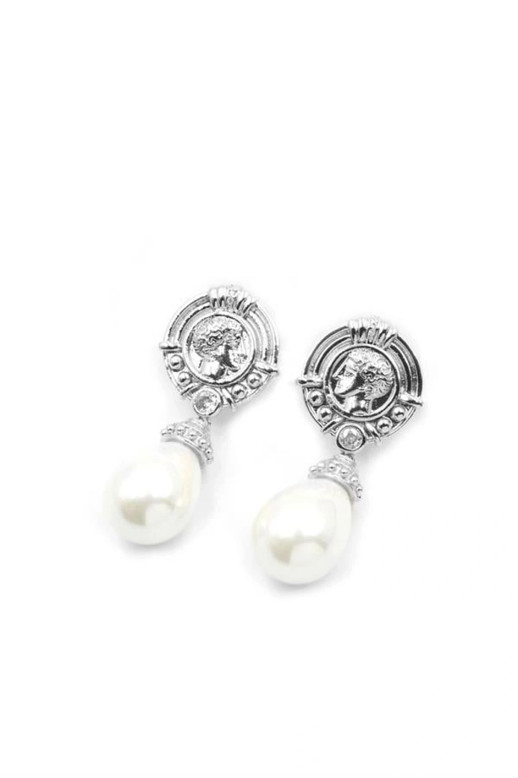 Madalyon İncili Küpe - Gümüş