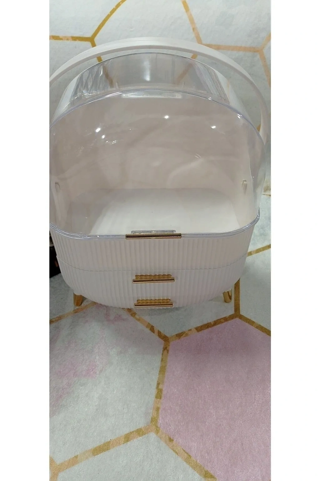 Kozmetik Makyaj Düzenleyici Organizer Gri Taşıma Kulplu Çekmeceli