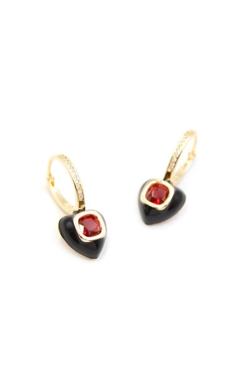 Mineli Kalp Küpe - Kırmızı
