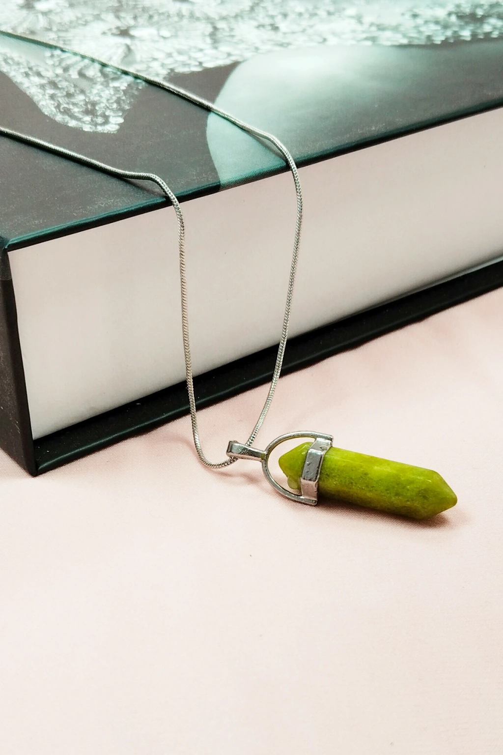 Yeşil Kuvars Doğal Taşı Zincirli El Yapımı Tasarımlı Kolye Uç: 3,5 cm Zincir: 20 cm Kutulu