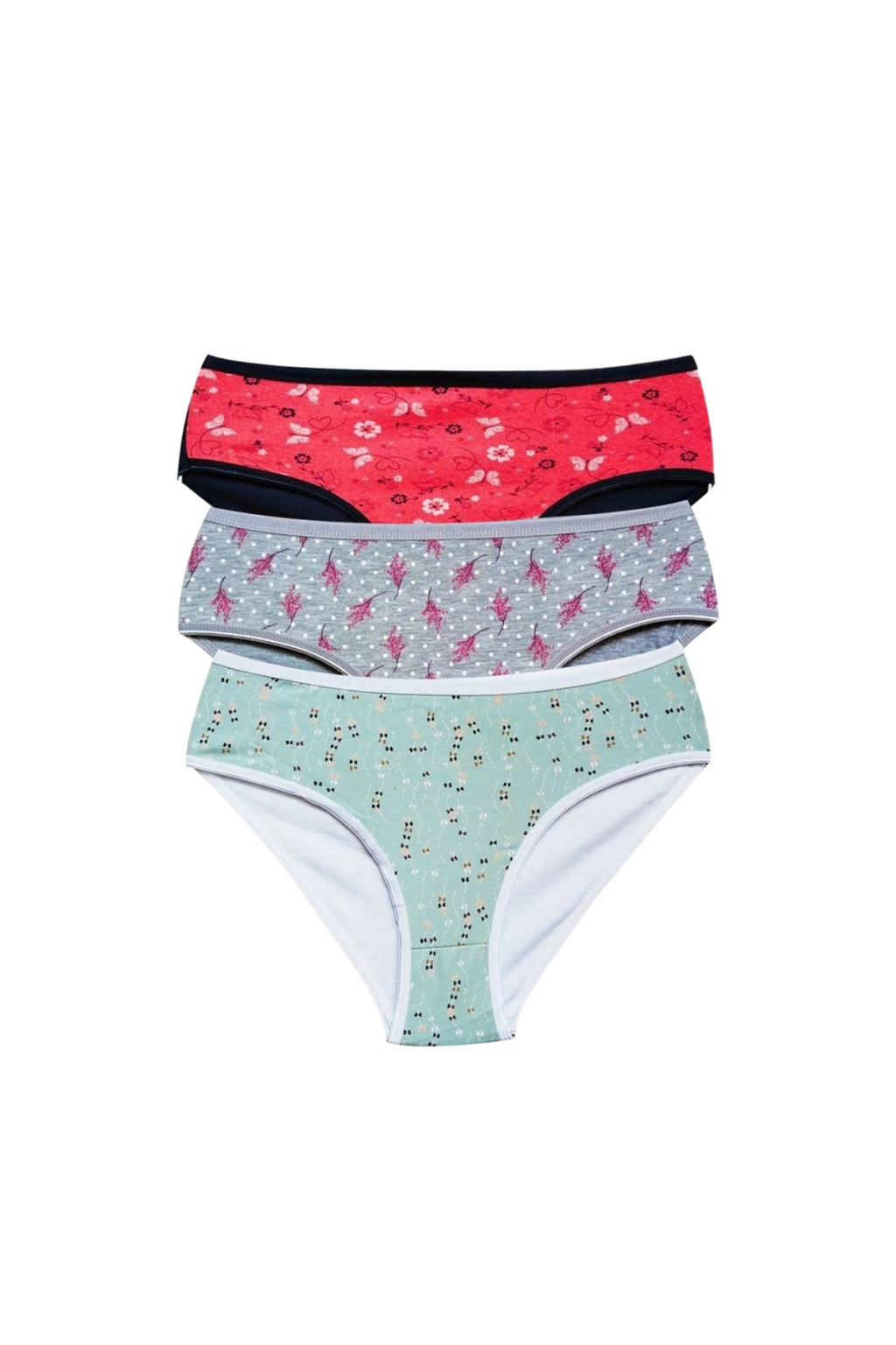 Pamuklu Geniş Kenarlı Likralı Desenli Bato Kadın Külot 3'lü Paket Set1