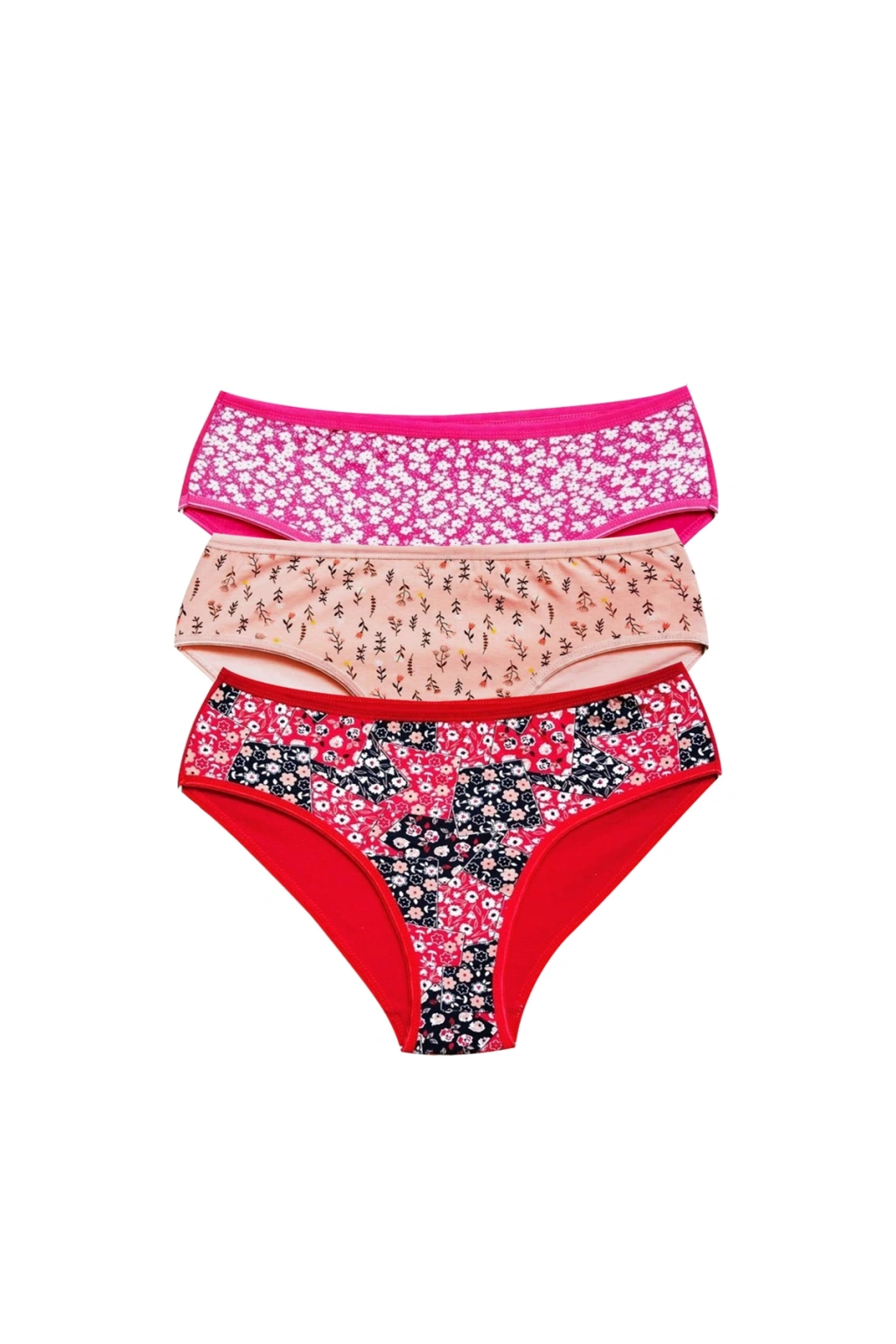 Pamuklu Geniş Kenarlı Likralı Desenli Bato Kadın Külot 3'lü Paket Set1
