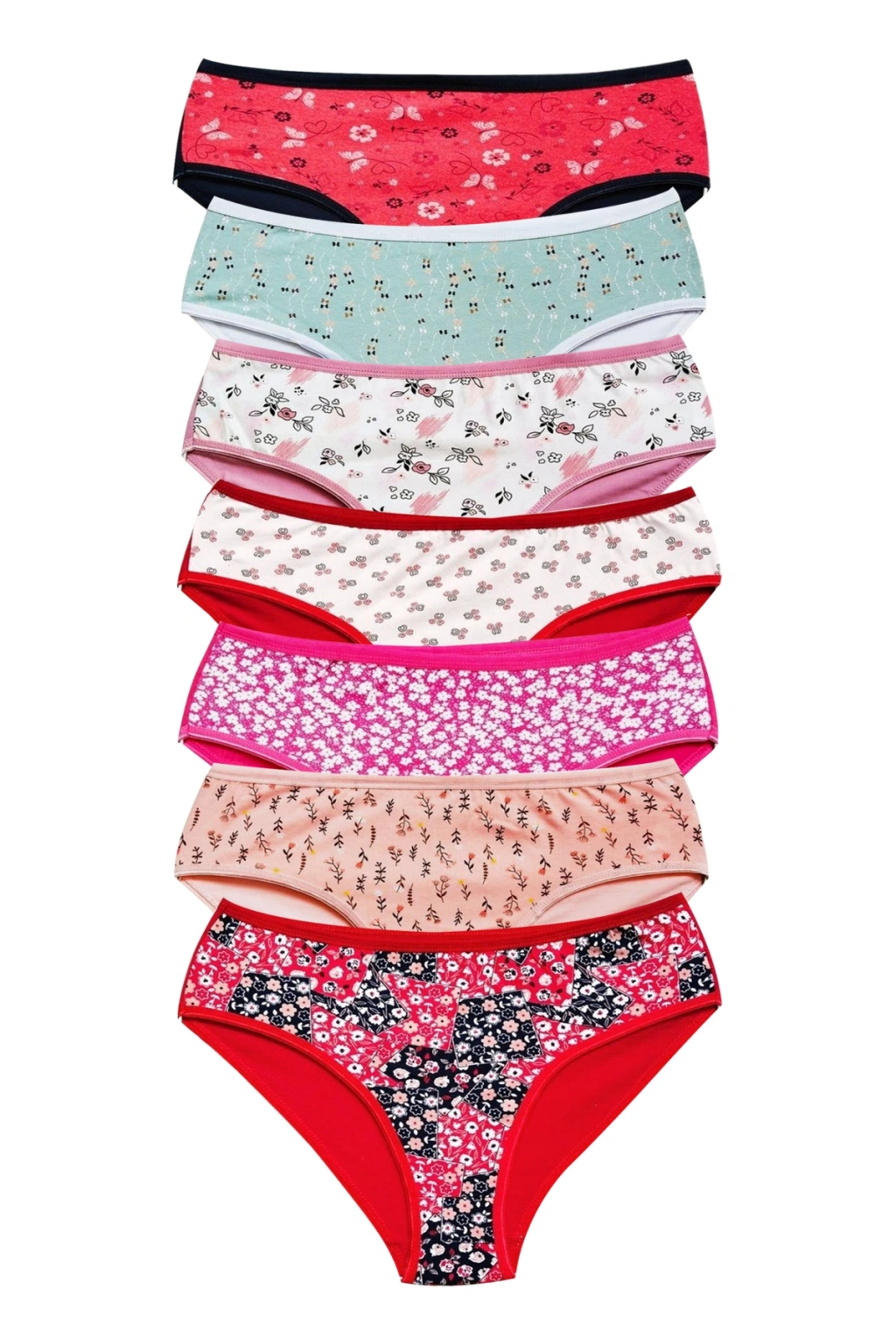 Pamuklu Geniş Kenarlı Likralı Desenli Bato Kadın Külot 7'li Paket