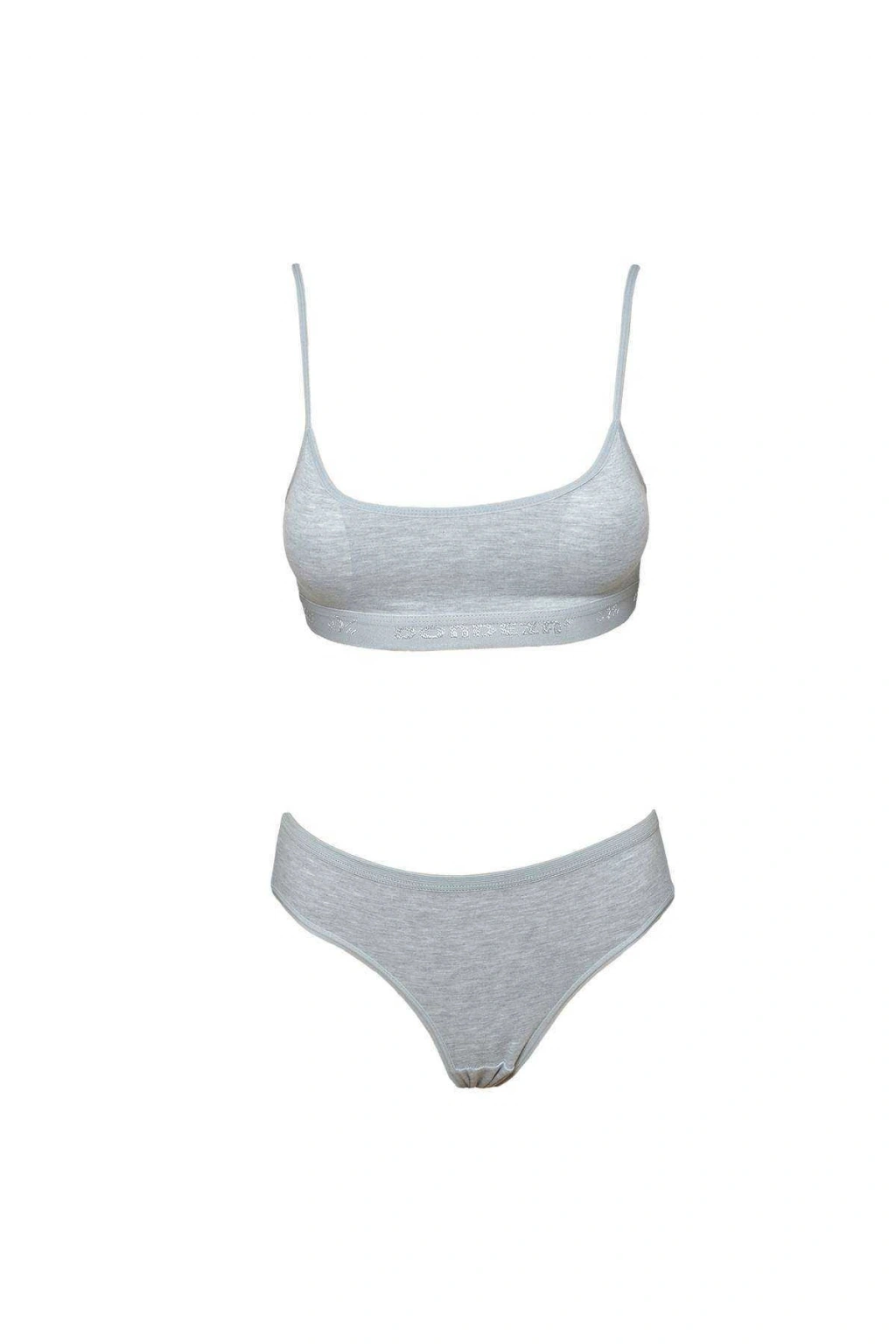 | Kadınlar gündelik yaşamda vücut sağlığını göz önünde bulundurarak rahat hareket edebilecekleri, teri engelleyici iç giyim ürünleri tercih etmelidirler. Bunun için de en doğru adrestesiniz. Ürünlerimizin kaliteli dokusu, renk, beden ve baskı çeşitliliğinin kattığı renklilikle en çok tercih edilen iç giyim markaları arasında yer almaktayız. İçerik: %93 Pamuk %7 Elastan Beden Tablosu; S-M= 40-46 L-XL= 48-54 PAKET İÇERİĞİ; 1 ADET GRİ PEDLİ BÜSTİYER 1 ADET GRİ LİKRALI SLİP KÜLOT |