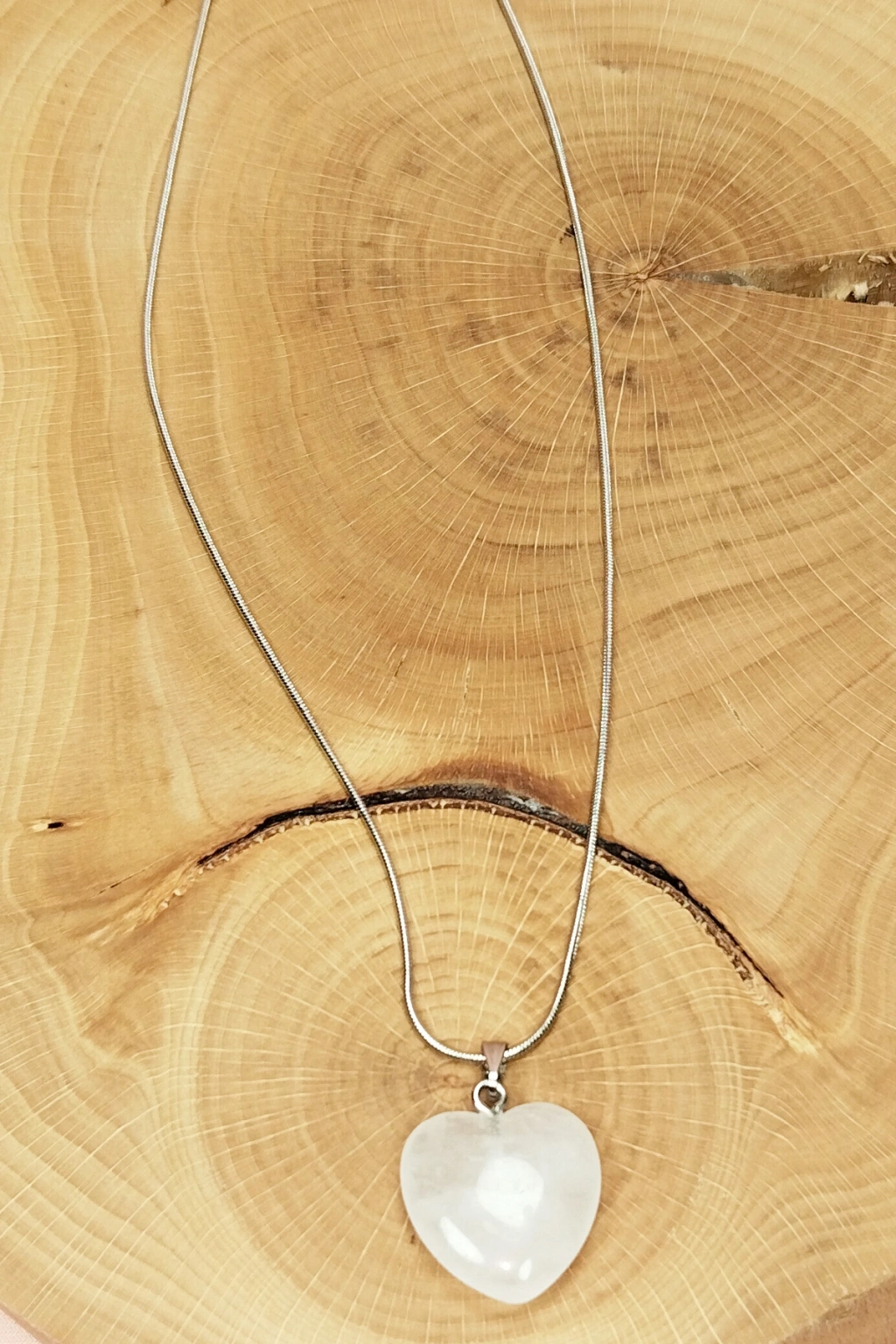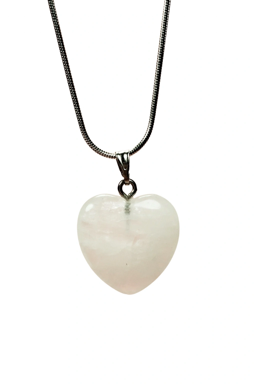 Pembe Kuvars Doğal Taşı Zincirli El Yapımı Tasarımlı Kolye Uç: 3,5 cm Zincir: 20 cm Kutulu
