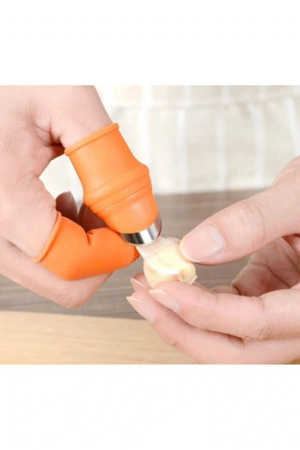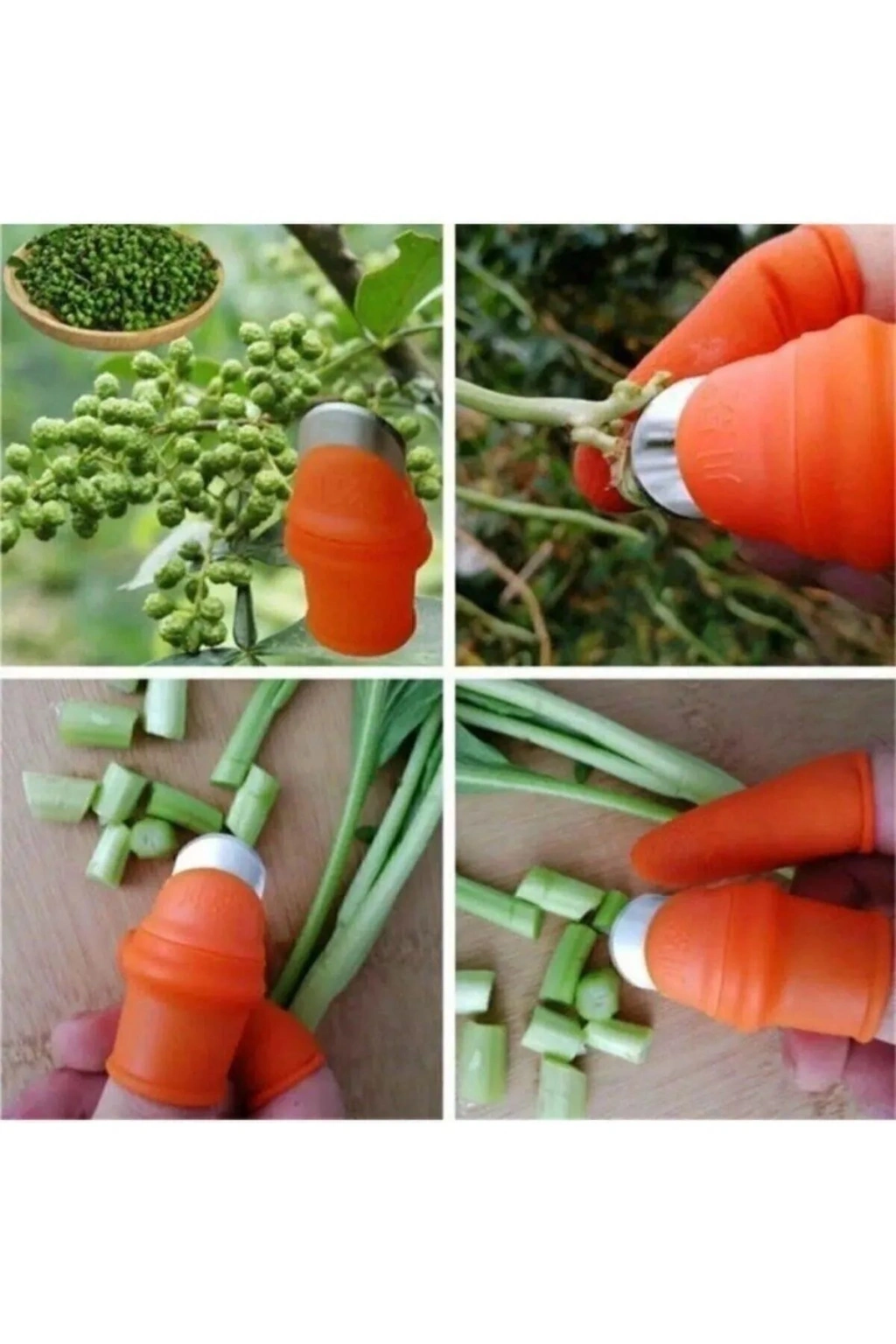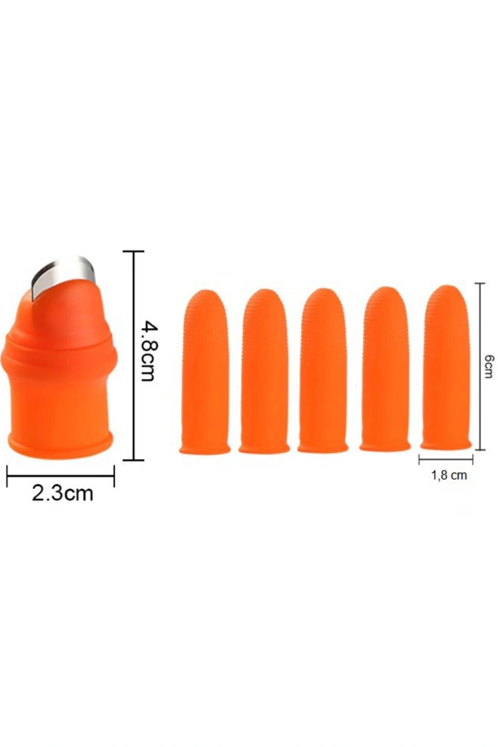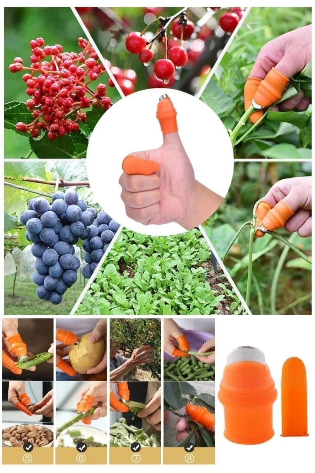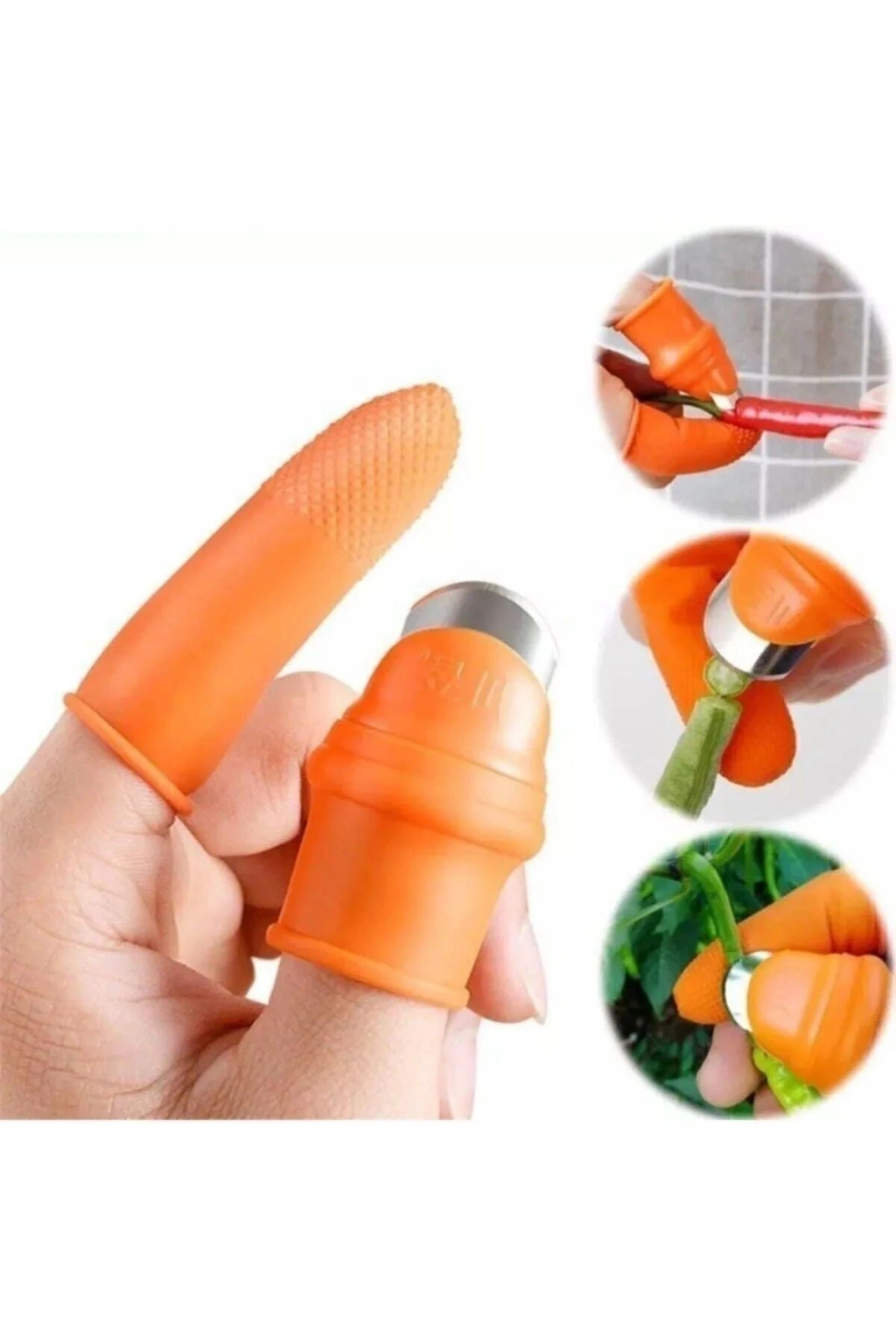 | Baş parmak koruyucu soyucu ayıklayıcı kesme eldiveni bahçede, mutfakta sebze meyveleri soymak için kullanılır. Bahçe işlerinizde meyve sebze koparırken parmaklarınızı korur ve kesip koparmanıza yardımcı olur Mutfakta sarımsak, sebze ve benzerlerini soymak için kullanılır Giyilebilir kısmı kaliteli silikon malzemeden üretilmiştir M Beden Set Boyutlar: 2.8*4.8*2.1cm Baş Parmak 6cm * 1,8 cm 5 Adet Orta Parmak |