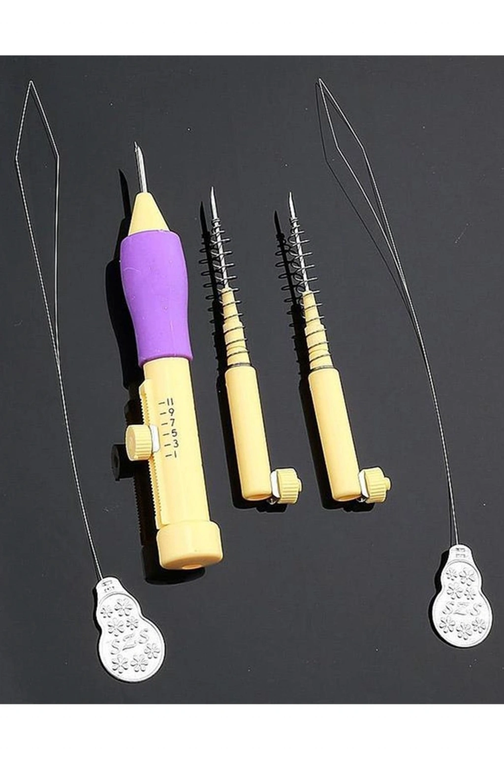 | Nazarone Punch İğne Seti Punch nakışı yapımında kullanılan iğne seti. Punch nakışı yapımında kullanılan kaliteli iğne seti. Set içeriğindeki ürünler 3 adet herbiri farklı kalınlıkta iğne 1 adet iğnelerin takıldığı makine 2 adet uzun iplik geçirici Set içeriğindeki ürünler 3 adet herbiri farklı kalınlıkta iğne1 adet iğnelerin takıldığı makine 2 adet uzun iplik geçirici |