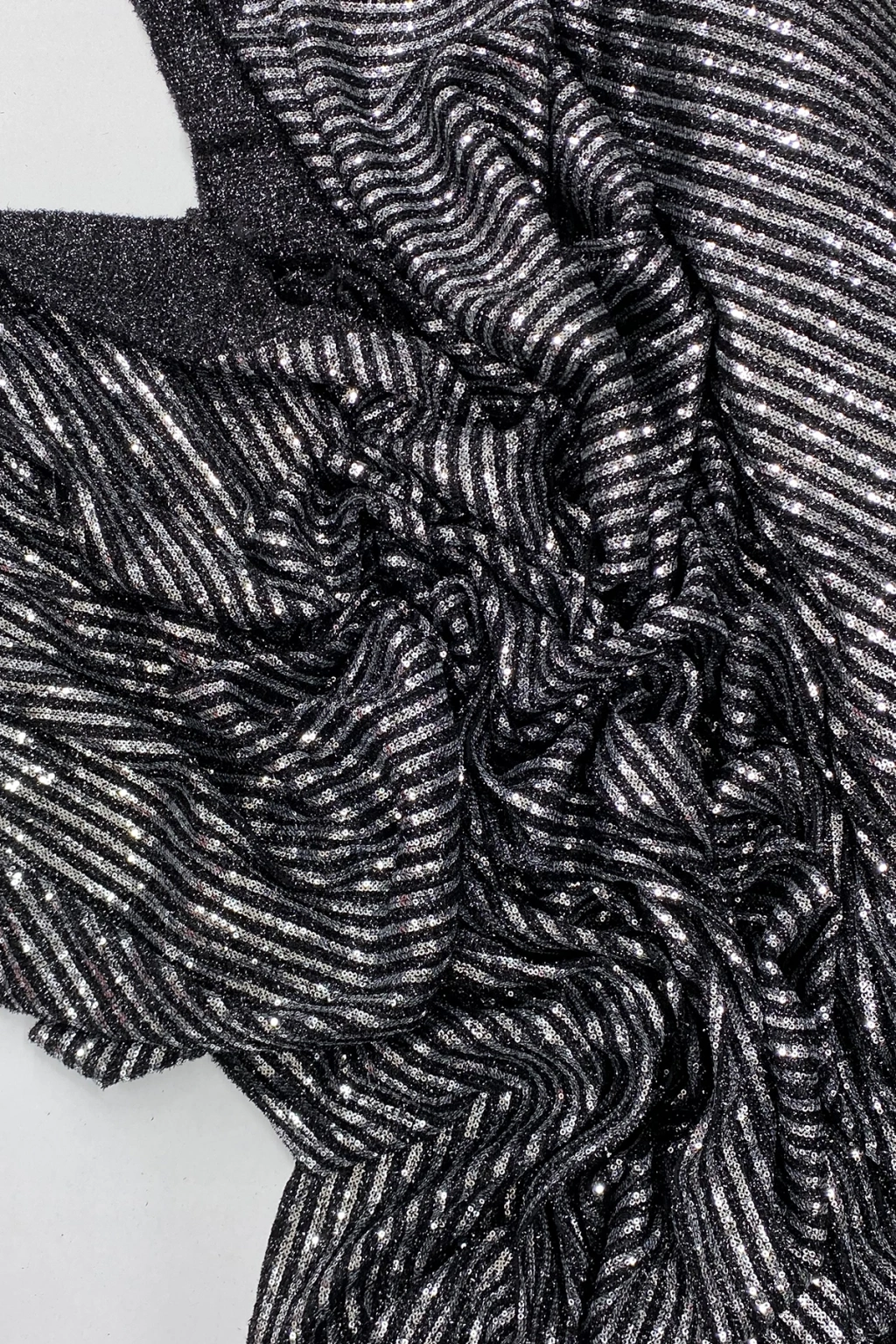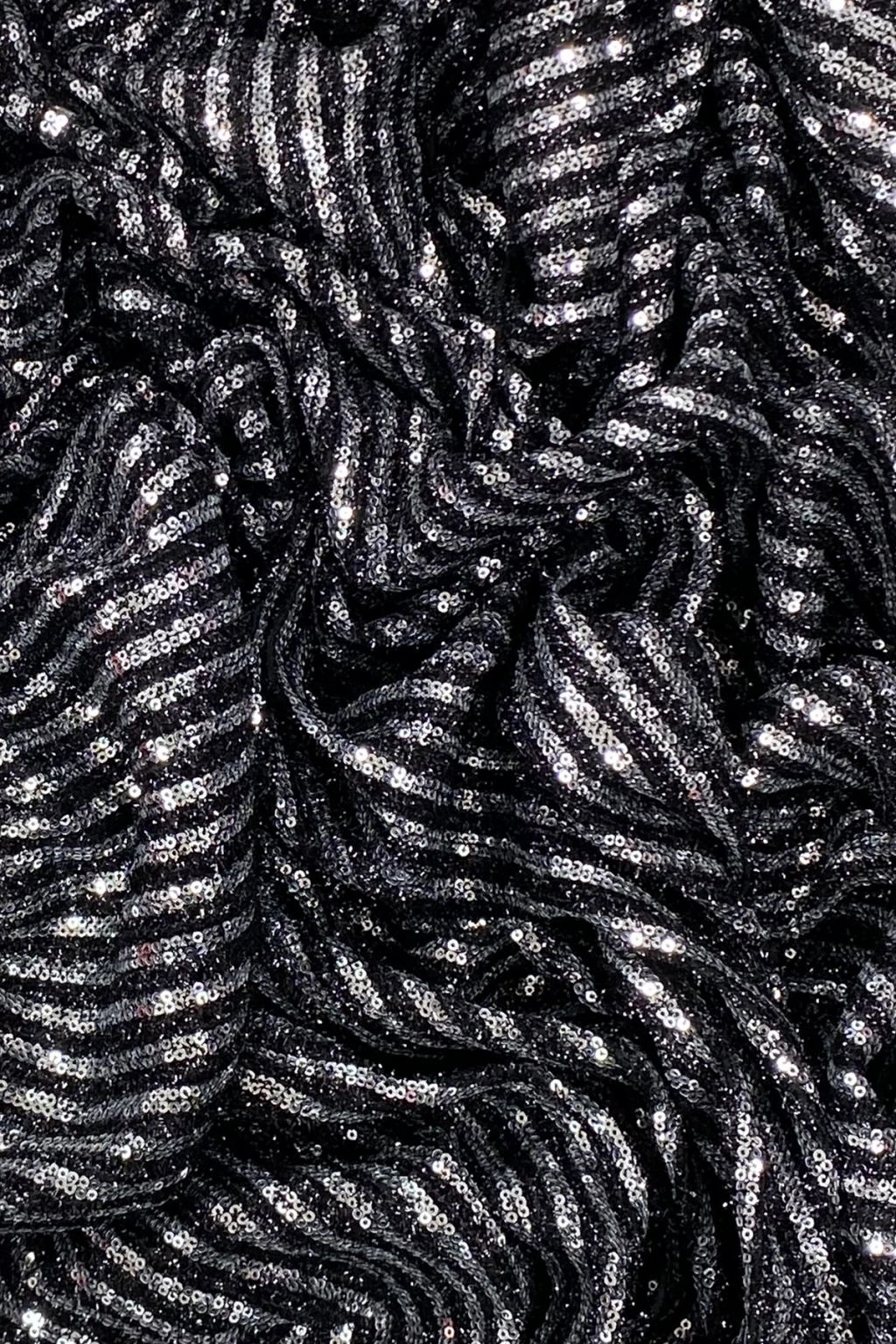 • Sakallı Çizgili Pullu Kumaş Pullu Payet Kumaş Abiye Nişan Düğün Siyah