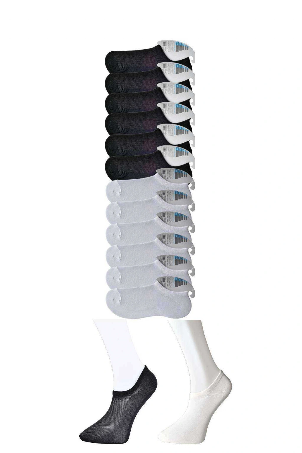 Siyah ve Beyaz Erkek Görünmez Çorap 12 çift
