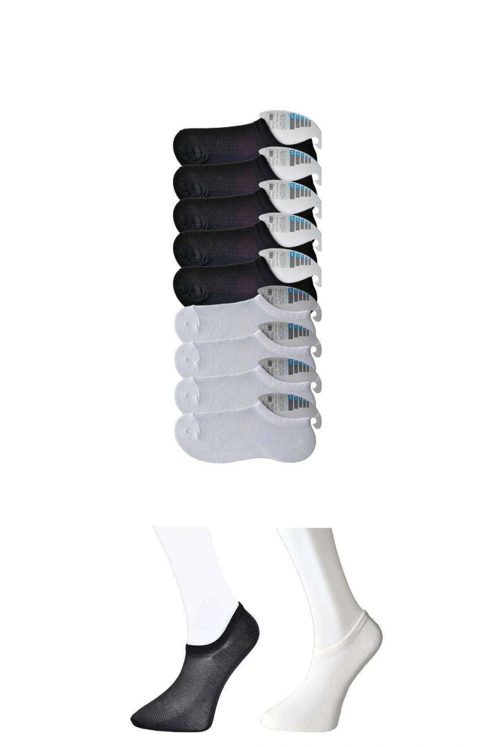 • Siyah ve Beyaz Erkek Görünmez Çorap 9 çift