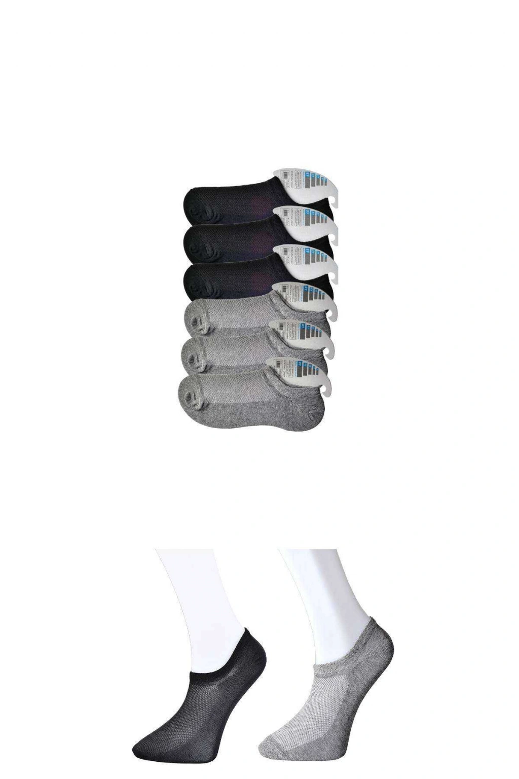• Siyah ve Gri Erkek Görünmez Çorap 6 çift