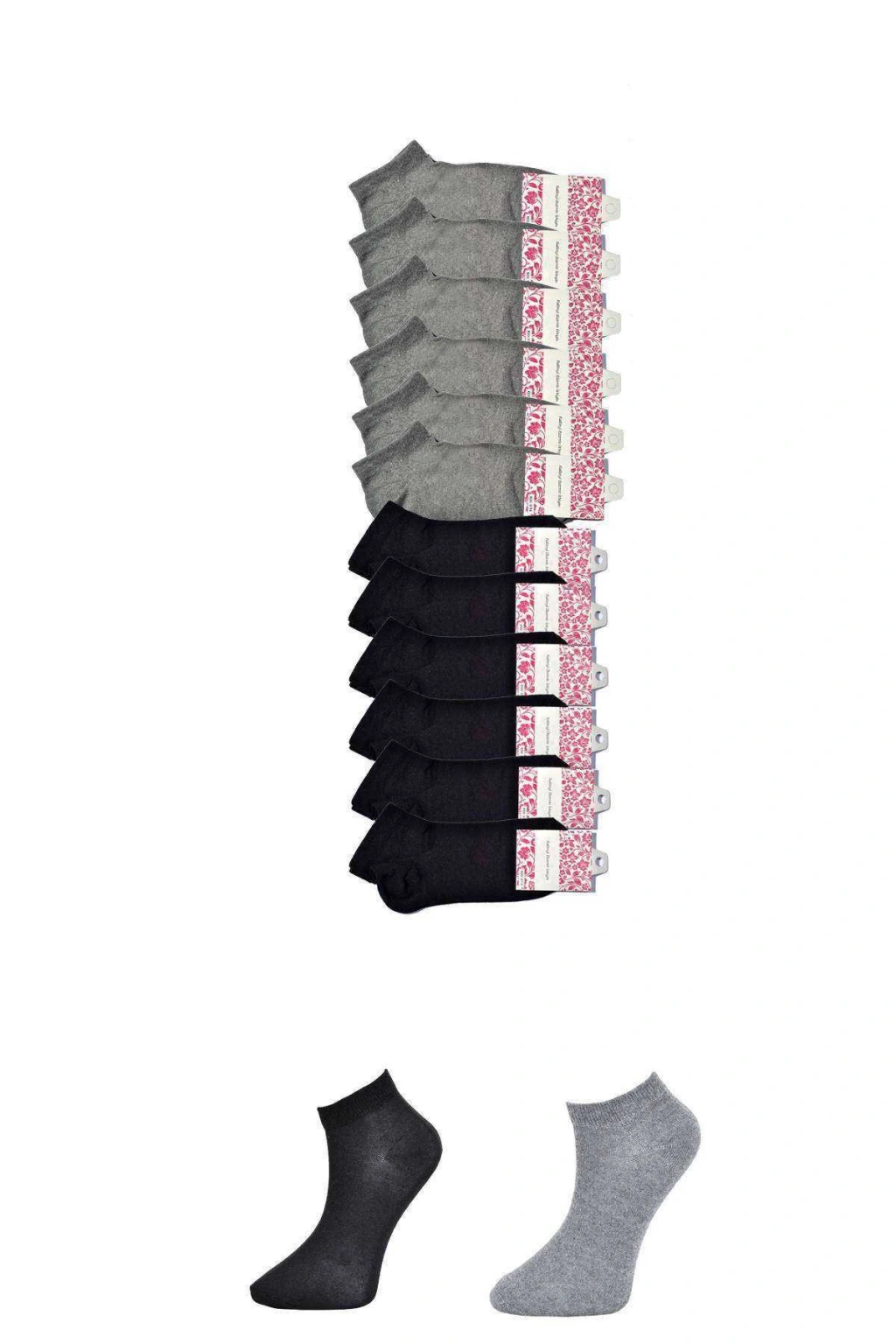 Siyah ve Gri Kadın Bilek Çorap 12 çift