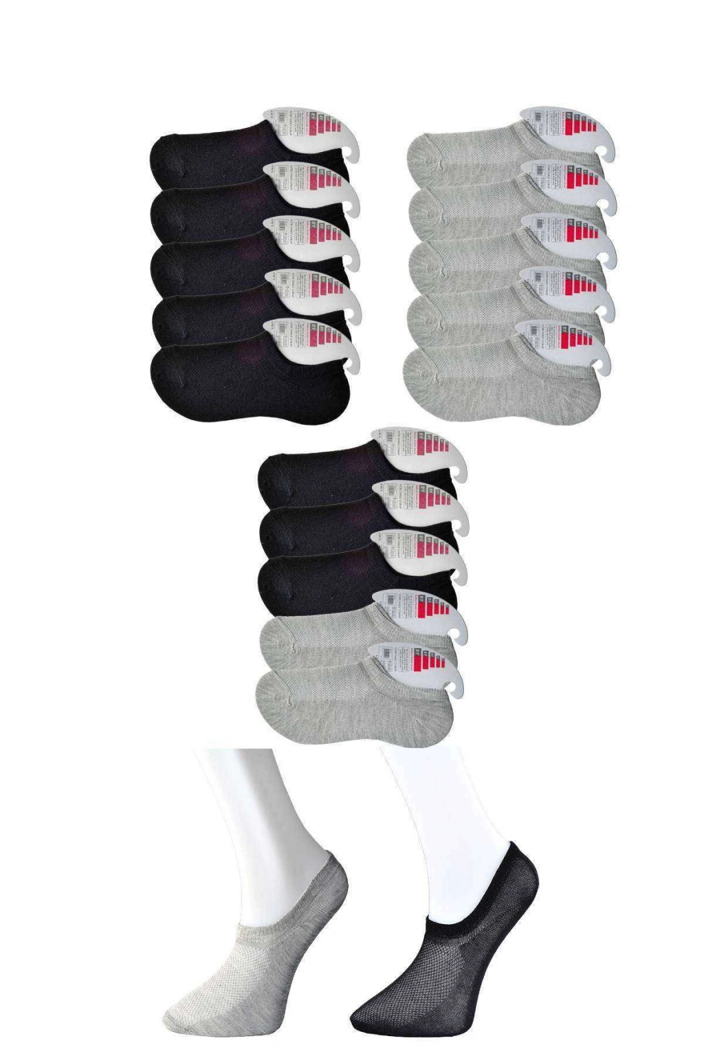 | Yumuşak ve rahat: Yüksek kaliteli pamuktan üretilen bu şık çoraplar çok yumuşaktır ve ayaklarınıza nefes alabilir. %80 Pamuk %18 Poliamid %2 Elastan Türkiye'de üretilmiştir. 36-41 numaralara uygundur. Paket içeriği : 15 çift gönderilecektir. Renk : Gri / Siyah |