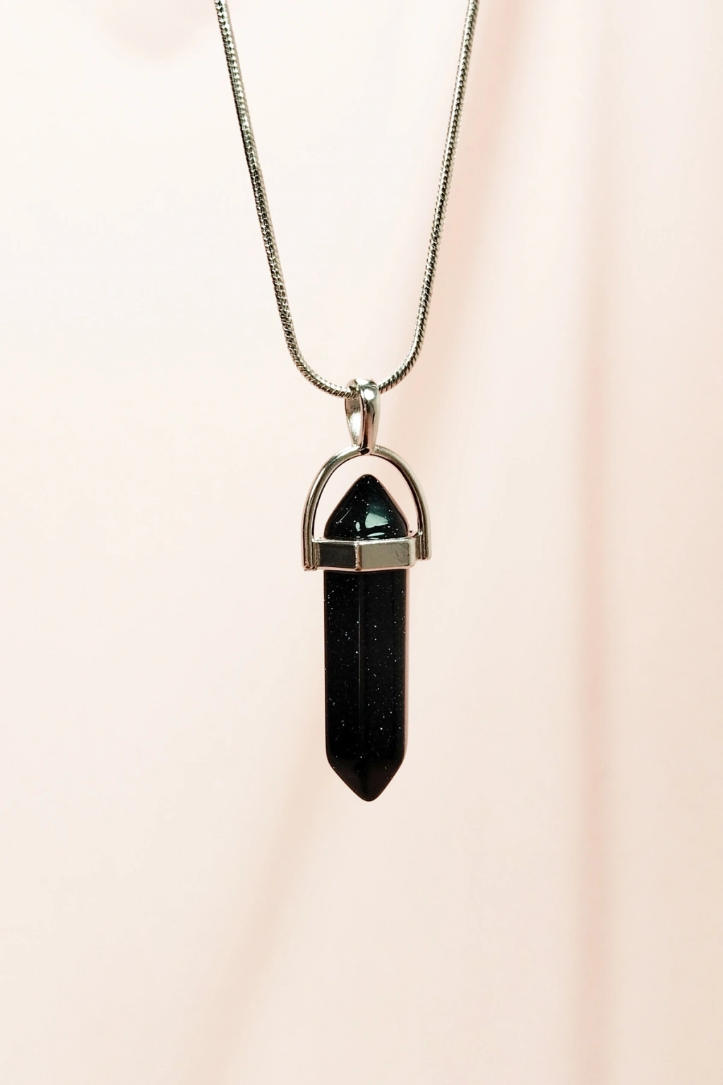 Obsidyen Doğal Taşı Zincirli El Yapımı Tasarımlı Kolye Uç: 3,5 cm Zincir: 20 cm Kutulu