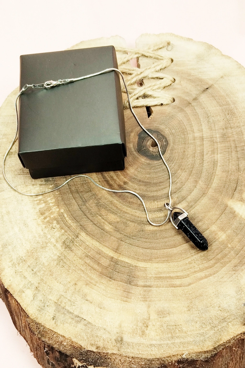 Aventurin Doğal Taşı Zincirli El Yapımı Kolye Uç: 2 cm Zincir: 20 cm Kutulu