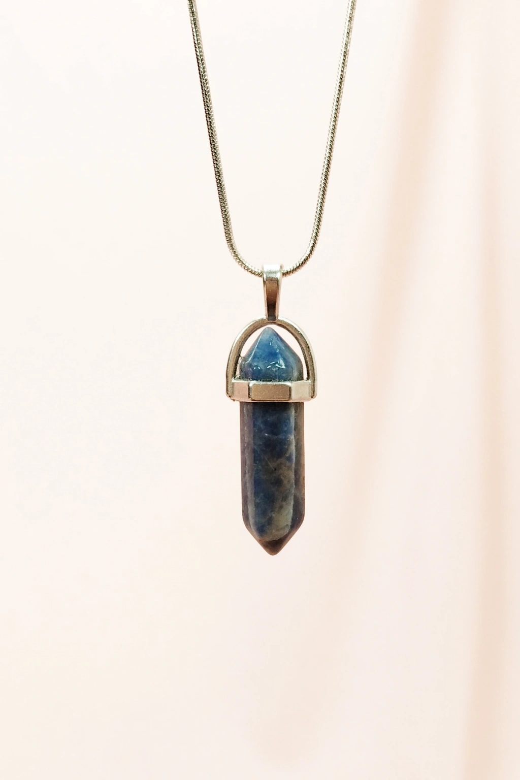 Sodalit Doğal Taşı Zincirli El Yapımı Tasarımlı Kolye Uç: 3,5 cm Zincir: 20 cm Kutulu