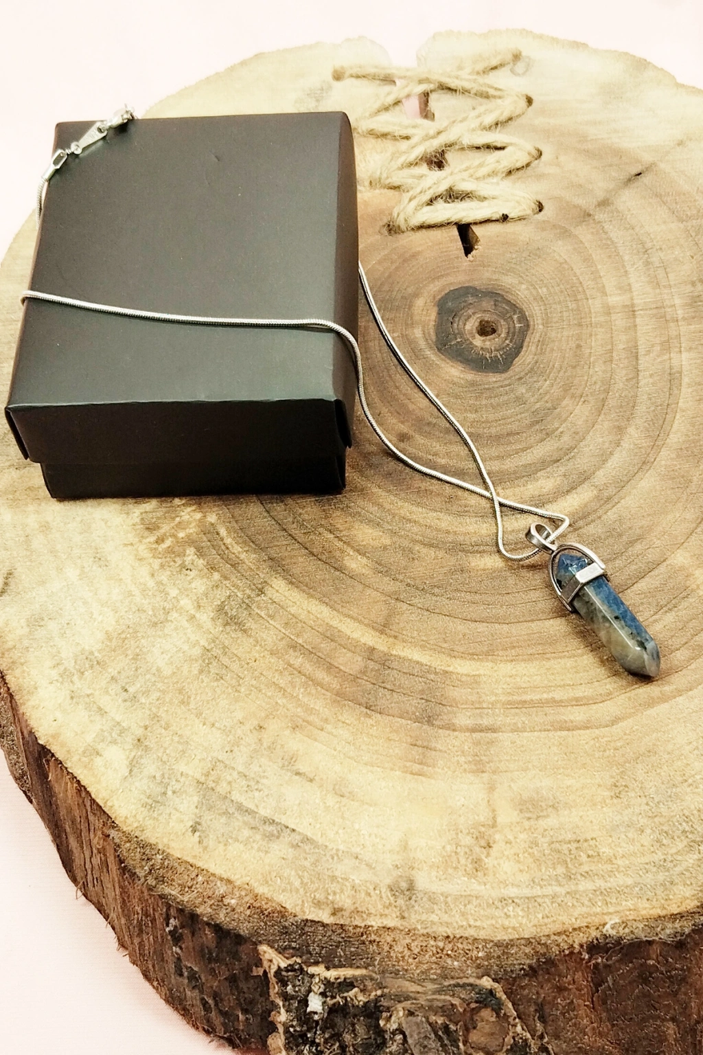 Labradorit Doğal Taşı Zincirli El Yapımı Kolye Uç: 2 cm Zincir: 20 cm Kutulu