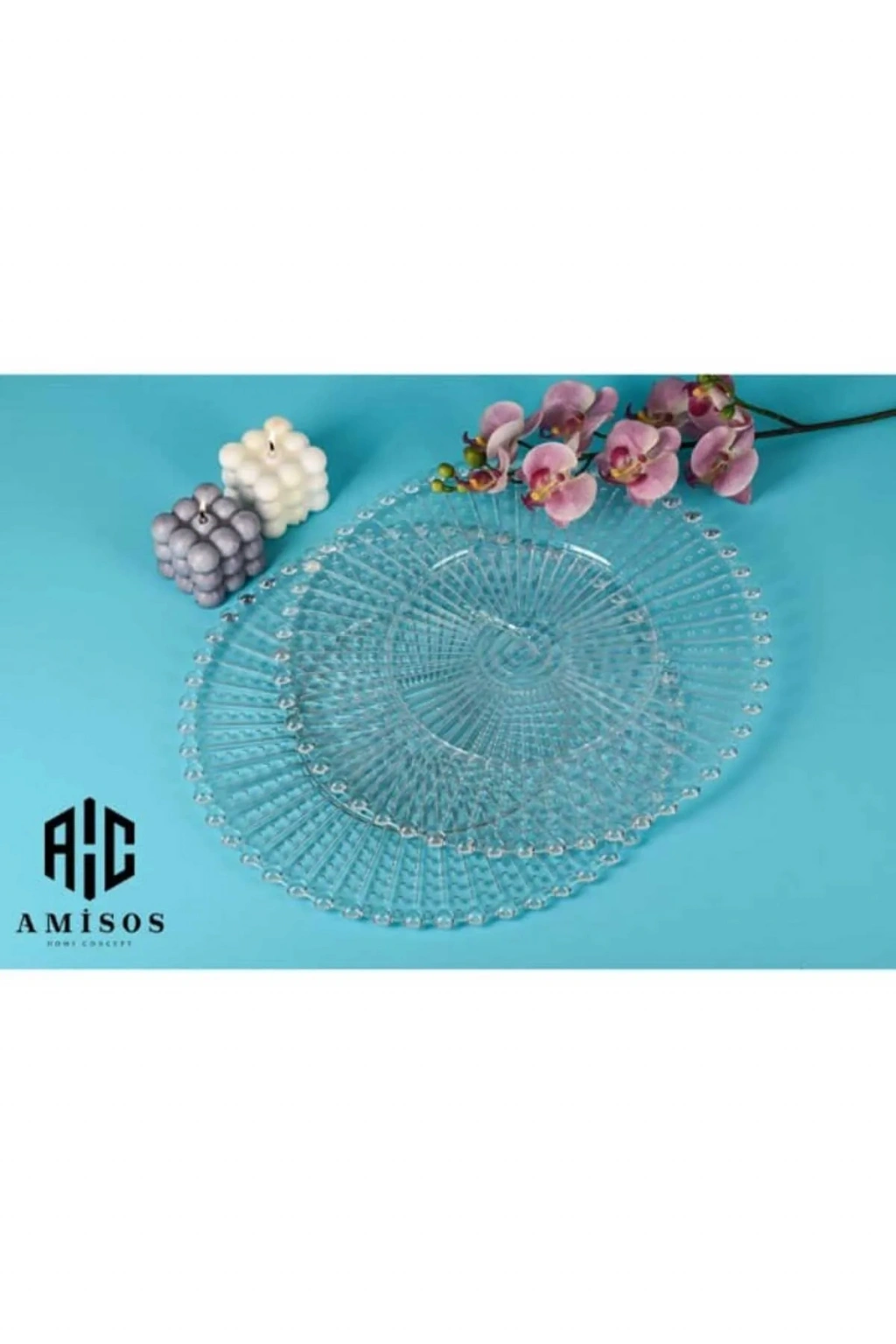 Supla, Boncuklu Sunum Tepsisi Şeffaf Sunumluk 20 Cm.