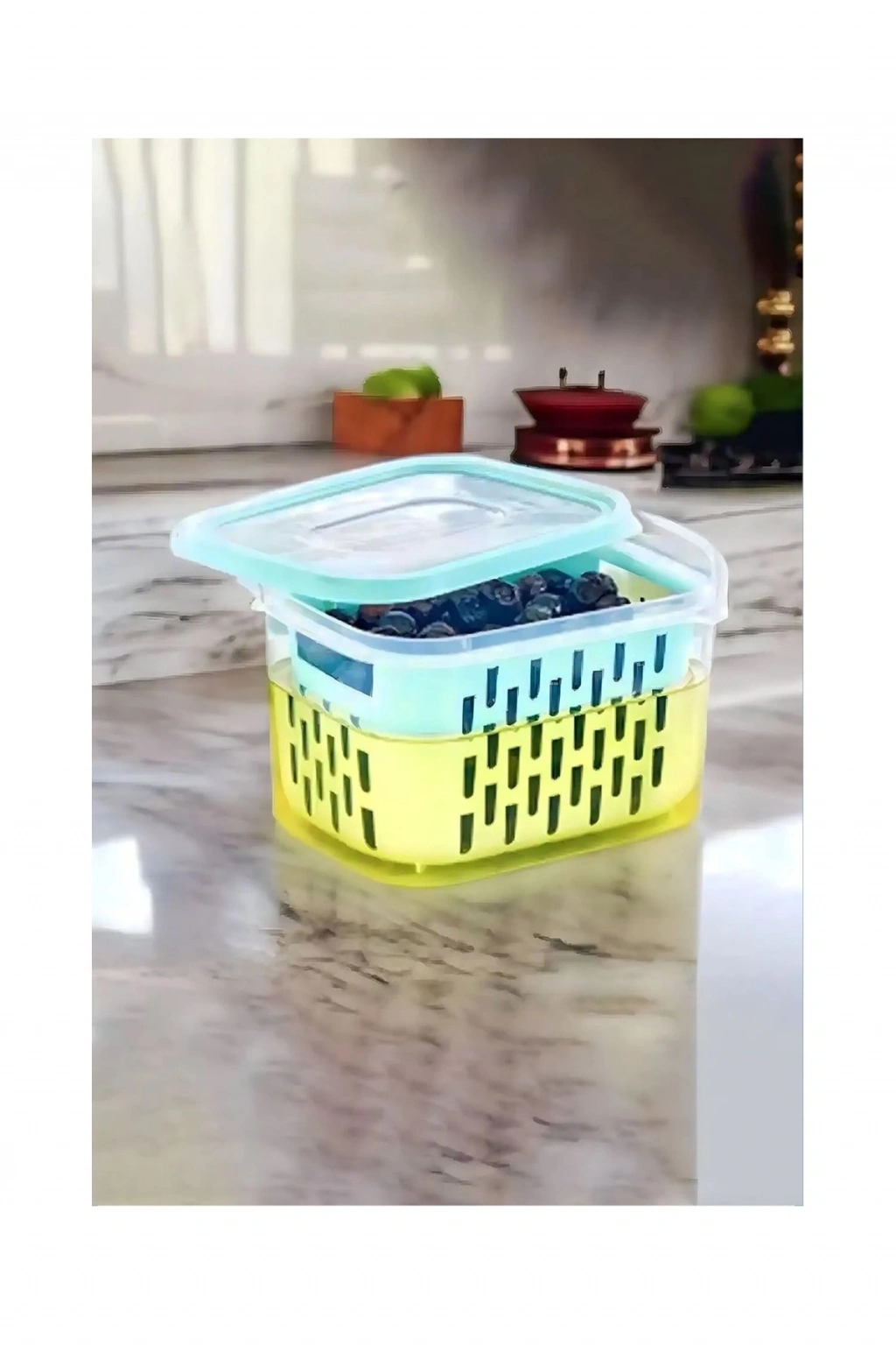 Süzgeçli Yıkama Hazneli Turşu Ve Zeytin-peynir Saklama Kabı 1.6lt Royaleks-Ak511 8681371351117