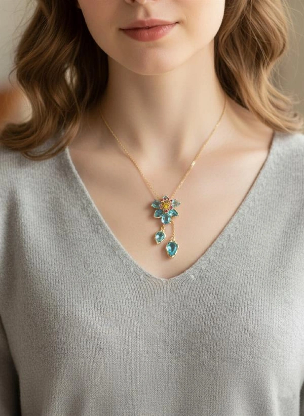 Swr Çiçek Kolye - Turkuaz