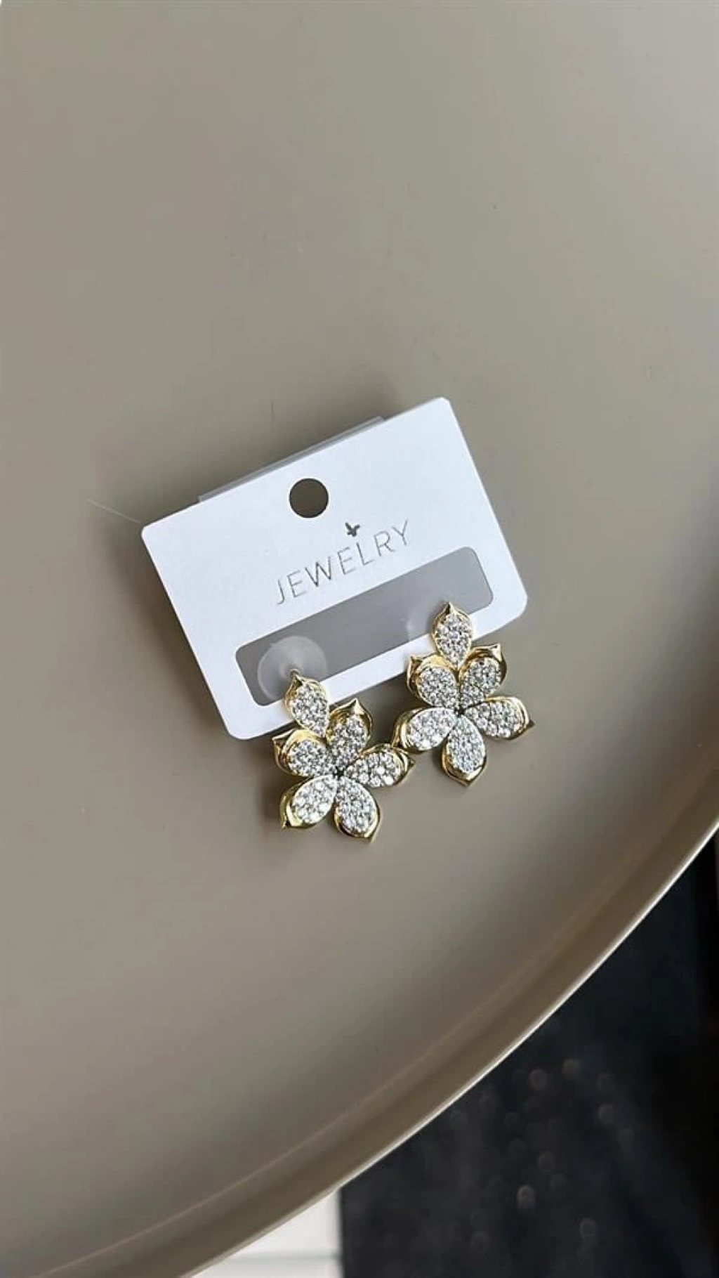Taşlı Çiçek Küpe - Altın