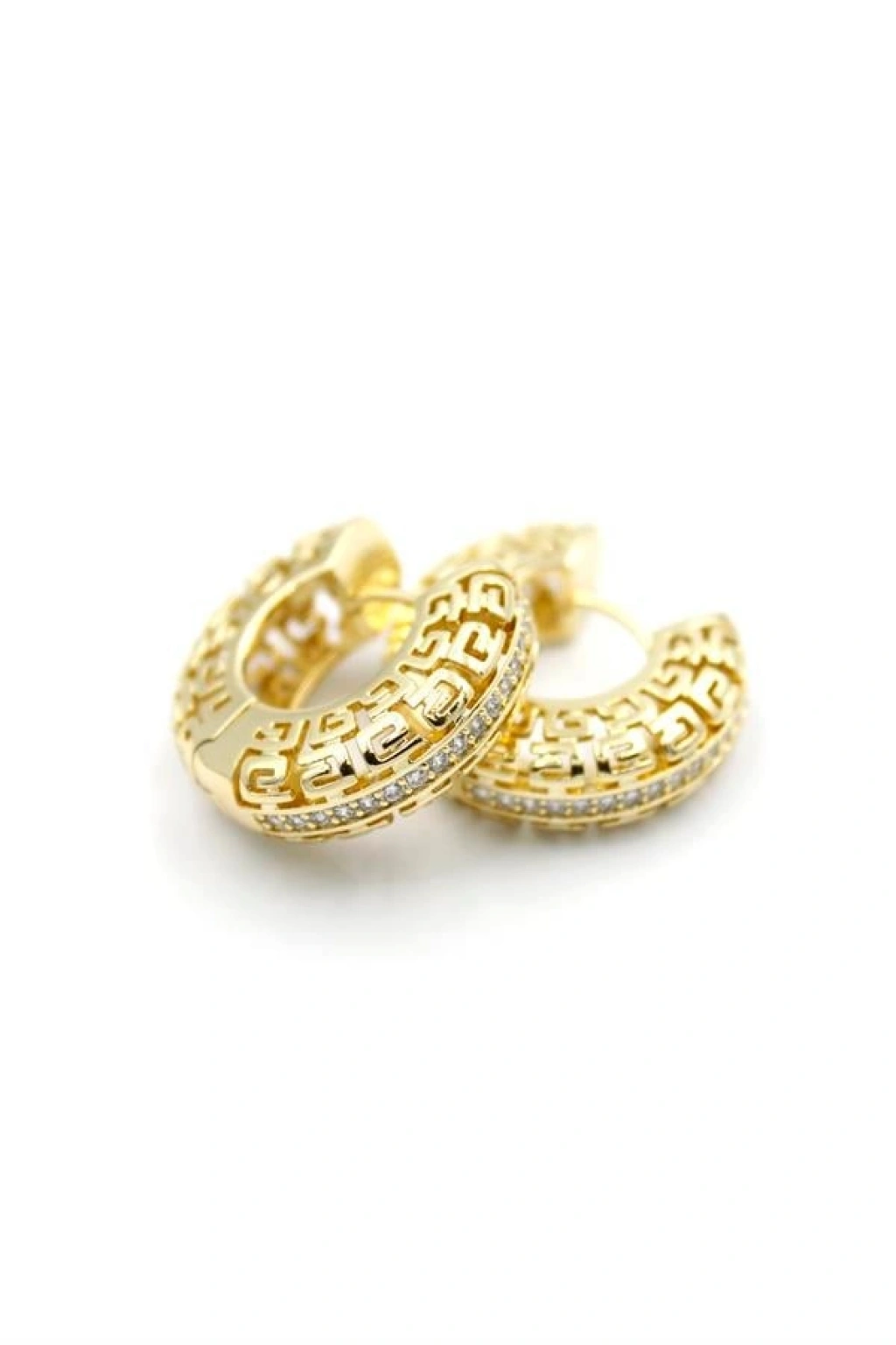 Taşlı Halka Küpe - Altın