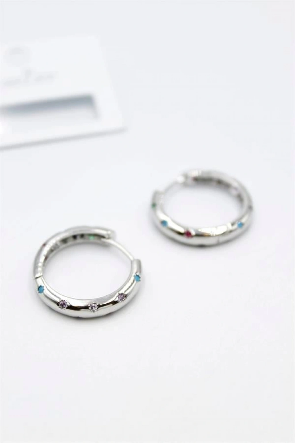 Taşlı Halka Küpe - Gümüş