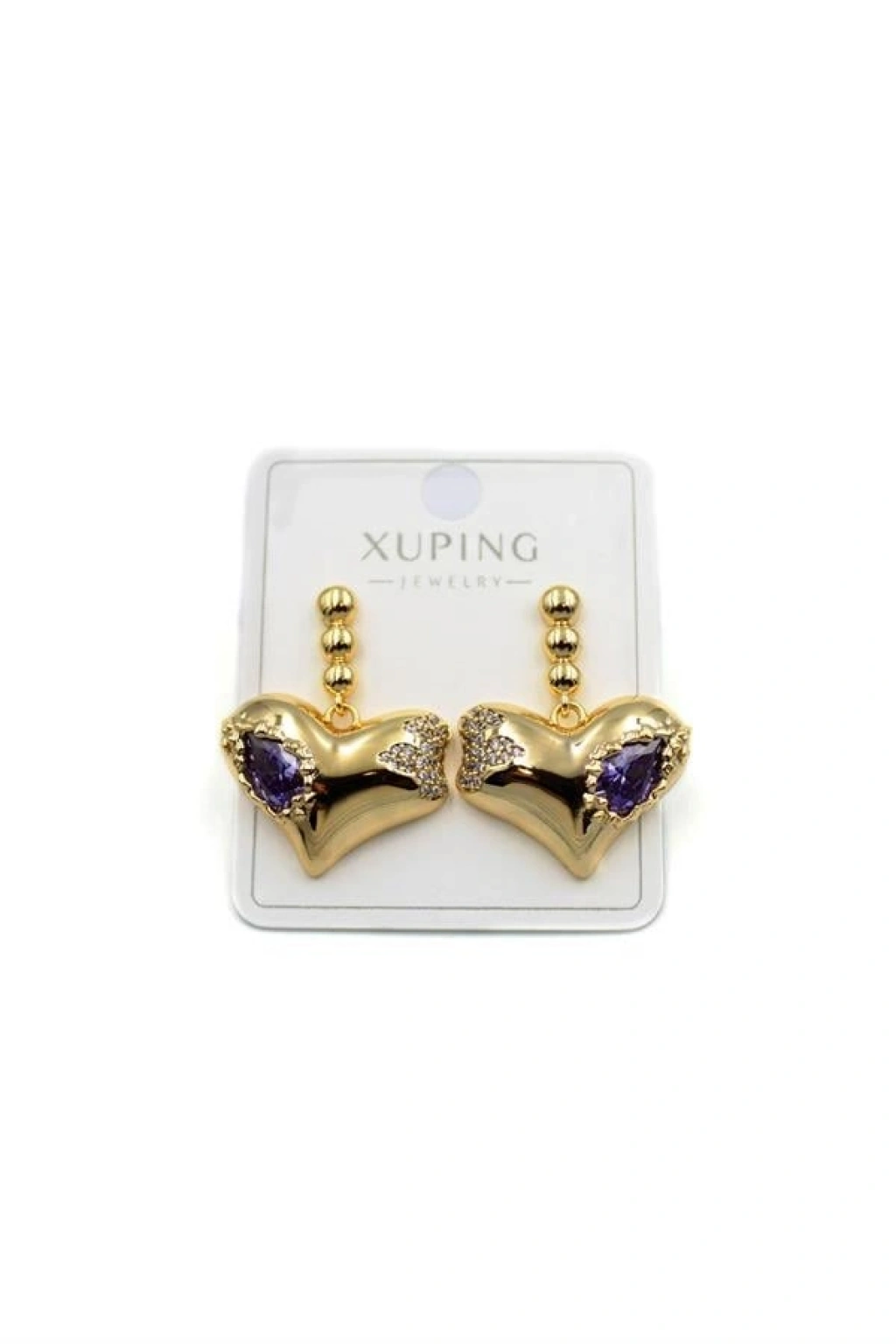 Taşlı Kalp Küpe - Altın