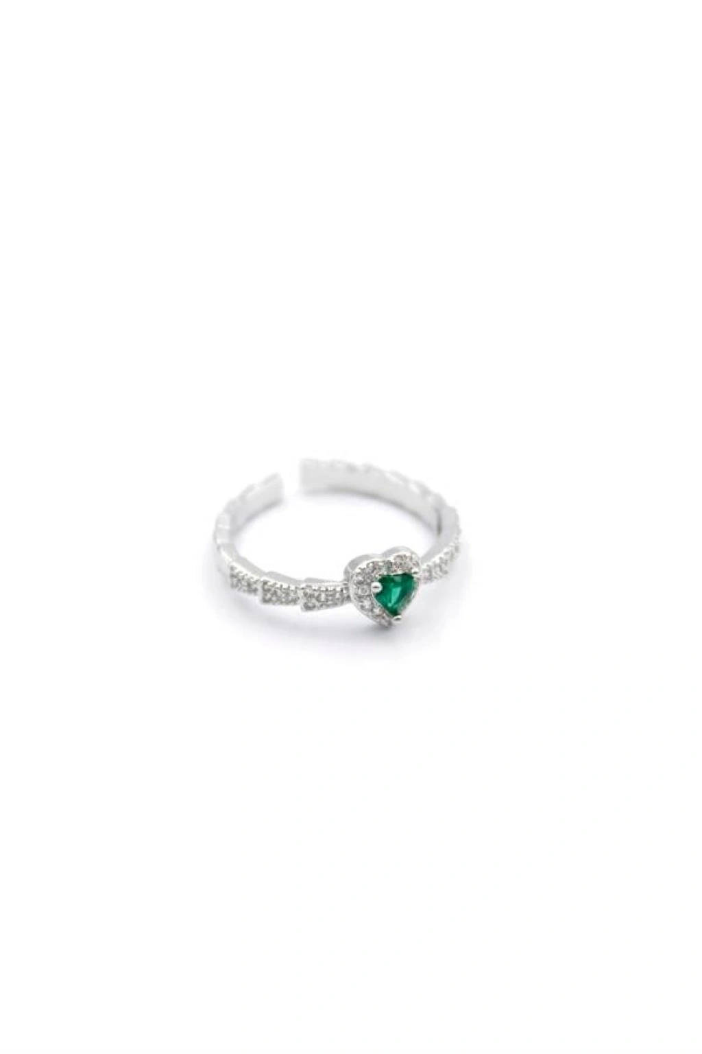 Taşlı Kalp Yüzük - Gümüş