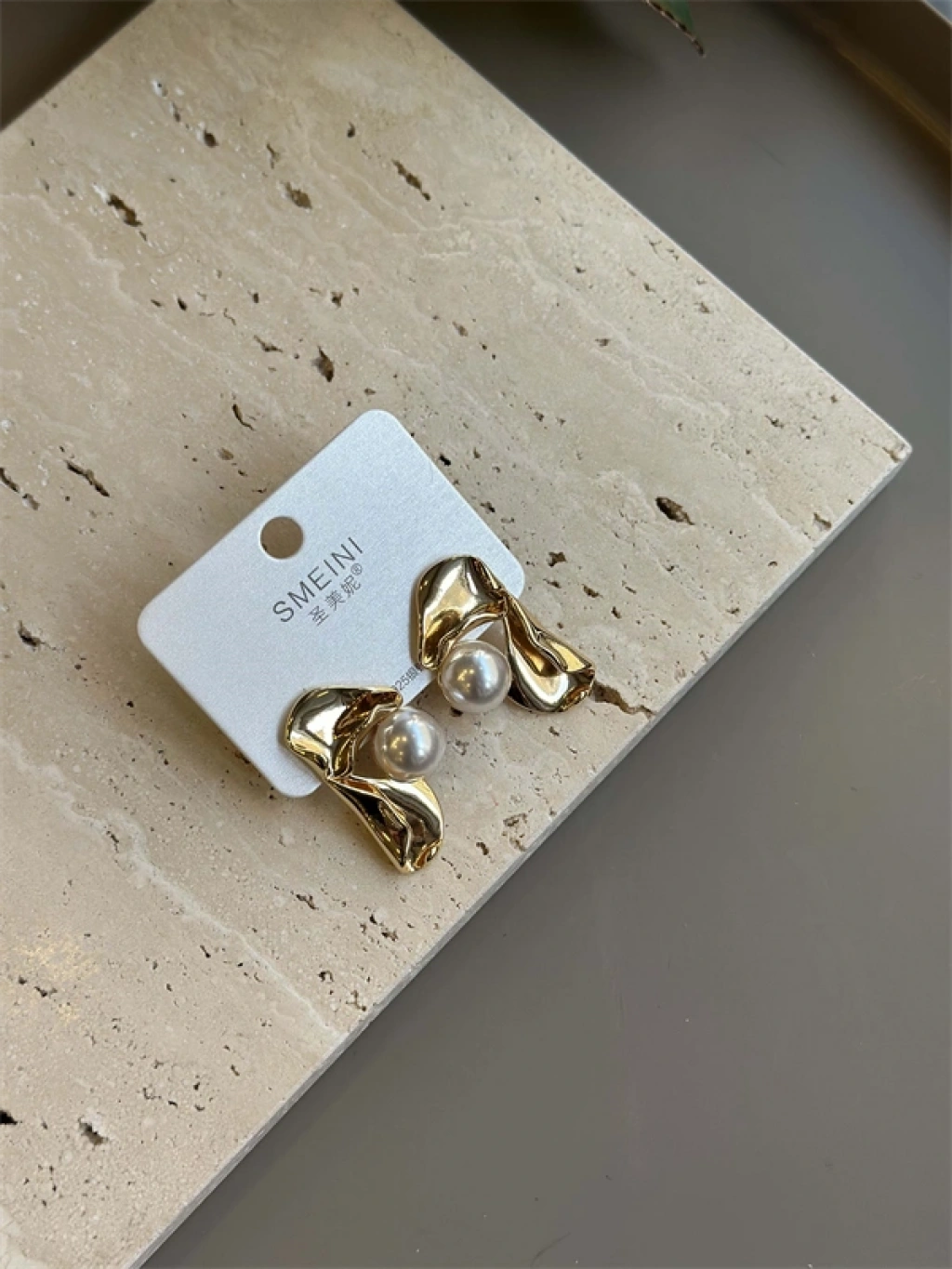 Taşlı Küpe - Krem