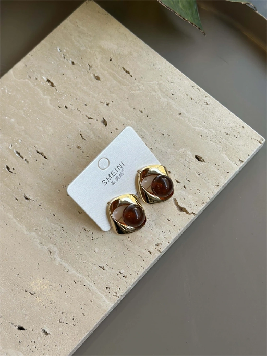 • Taşlı Küpe - Kahverengi