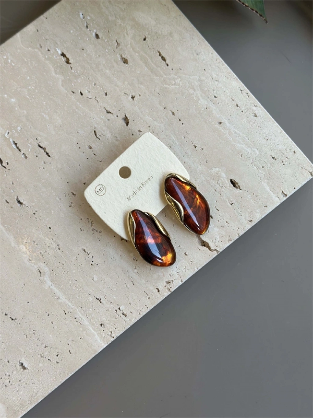 Taşlı Küpe - Kahverengi